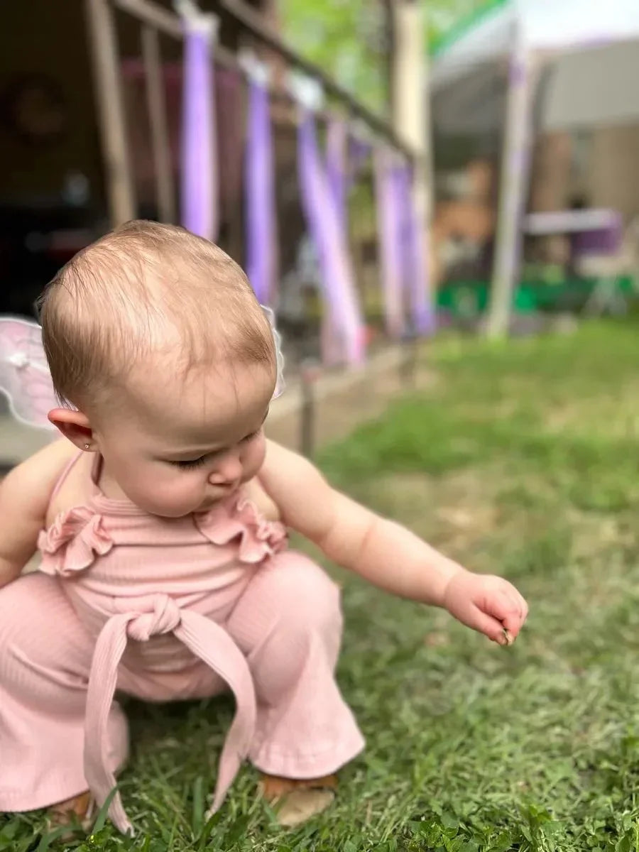 0-24Months Toddler Baby Girl Romper Summer Clothes Cute Ruffles Trim Hanging Neck Jumpsuits Playsuit Come with Belt