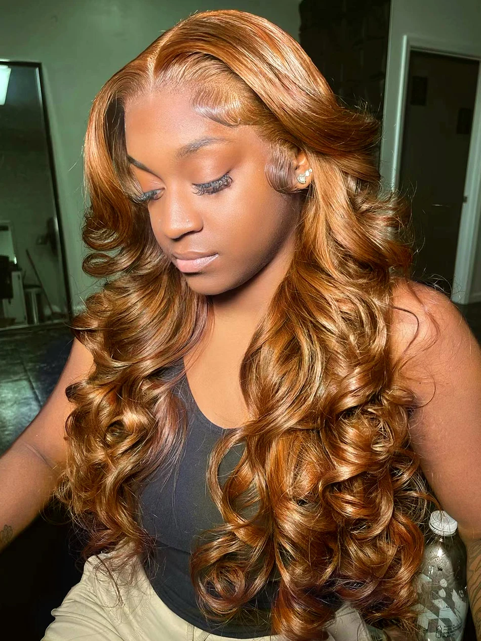 100% Raw Human Hair Bouncy Curly Lace Frontal Wigs 250 Density Ombre Bouncy Loose Wave Double Drawn Hair 13X4 HD Front Lace Wigs