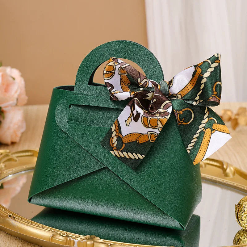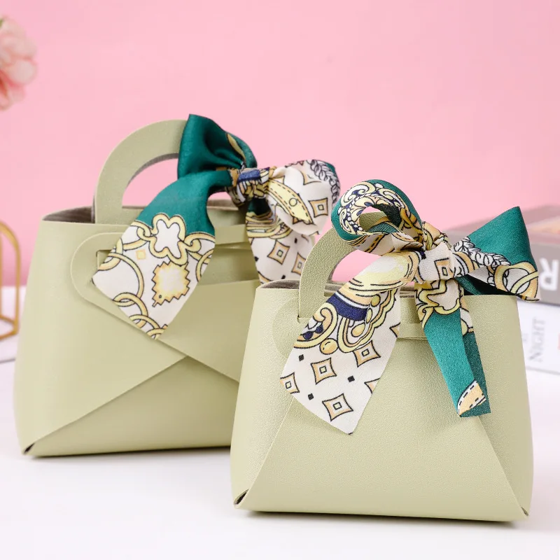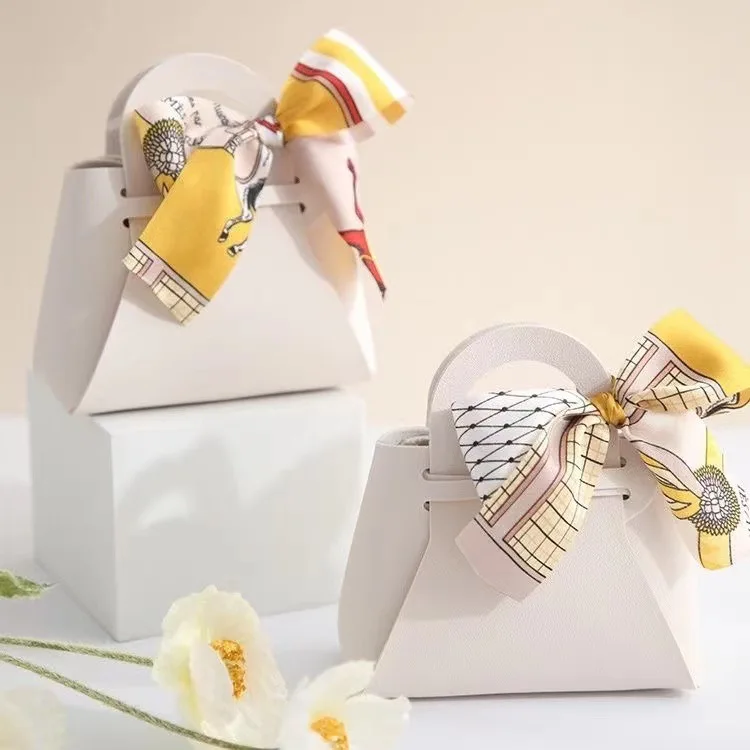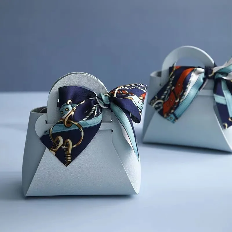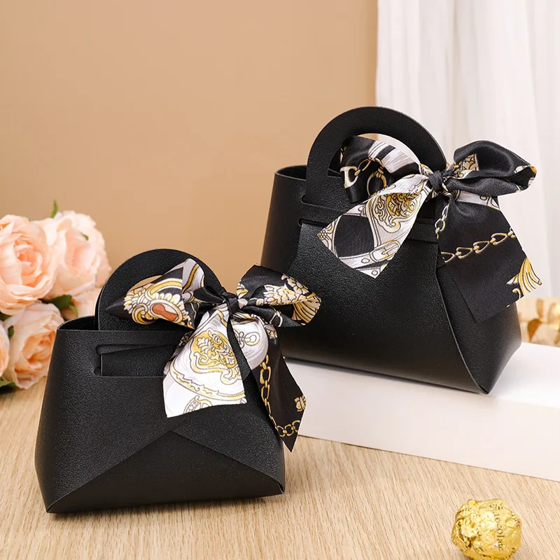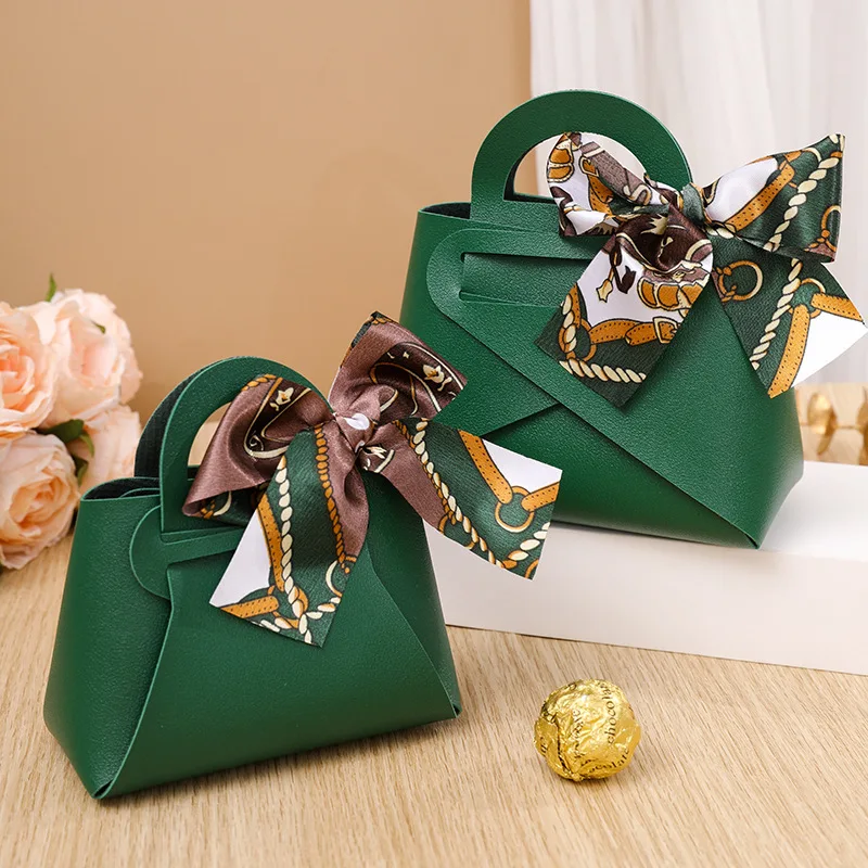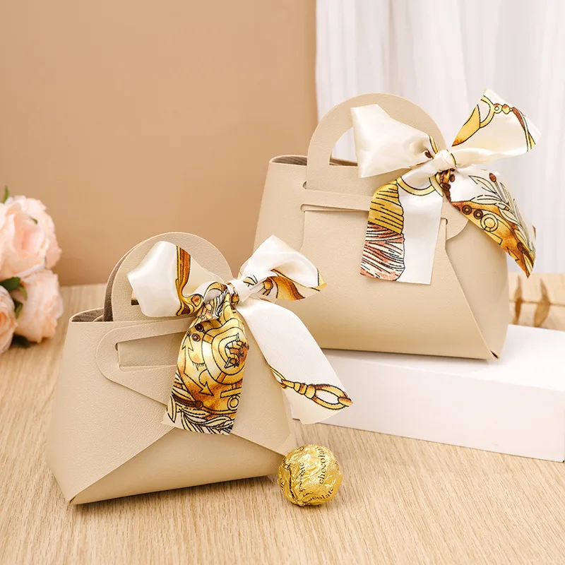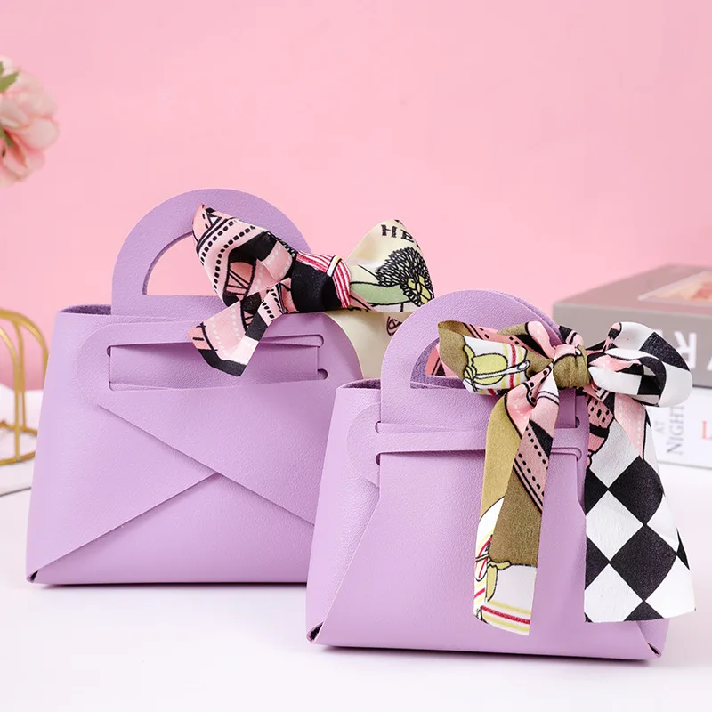 10PCS Distribute Leather Pink Gift Bags Wedding Favour Bag for Guest Mini Handbag with Ribbon Candy Packaging Box Party Decor