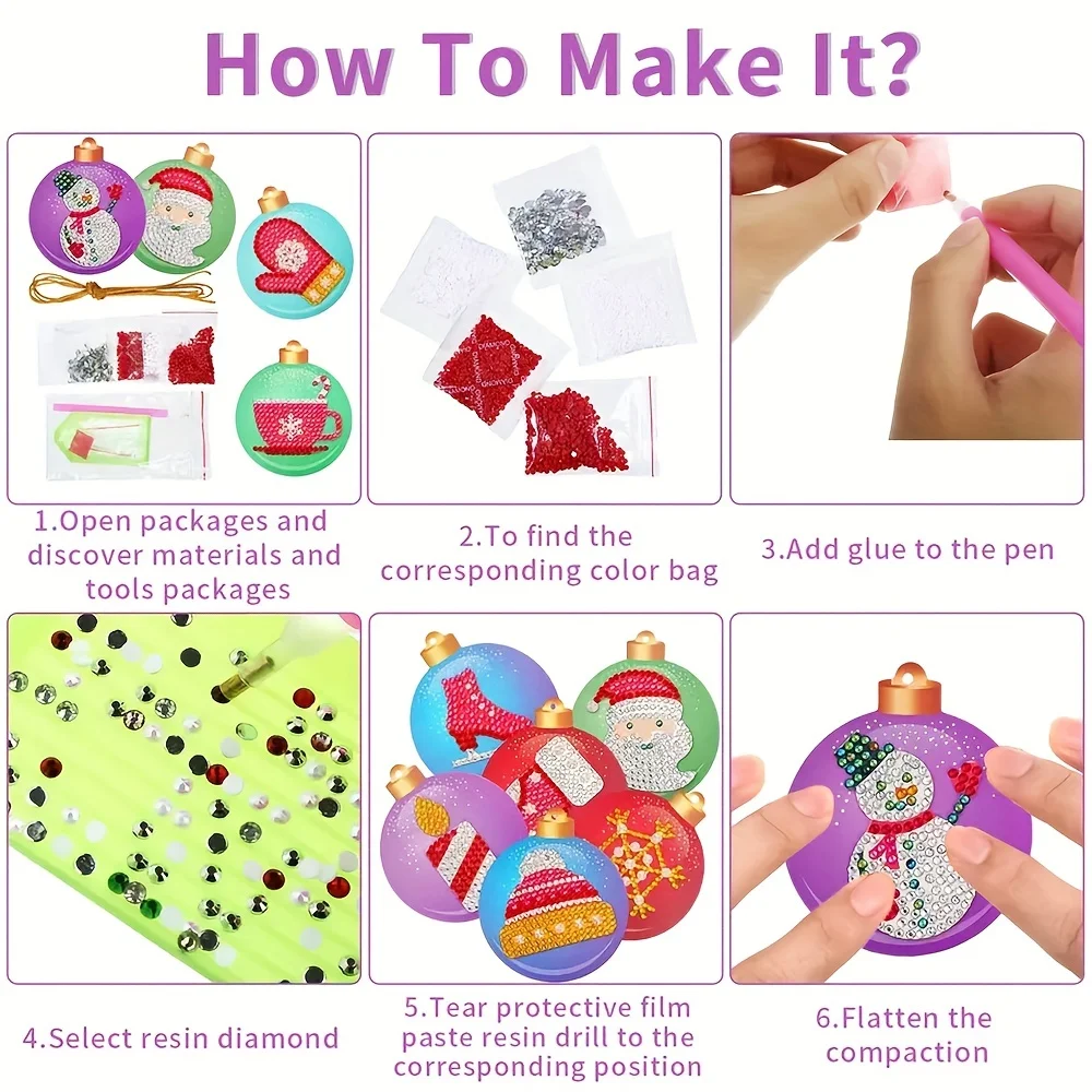 10PCS DIY Christmas Tree Pendant Diamond Painting Special Shape Full Drills Hanging Ornament Christmas Decor Natal Navided