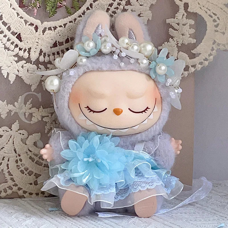 17CM Pendant Labubu Doll 17cm Labubu Generation 1 2 and 3 Macaron Color Set: Hair Hoop and Lace Skirt