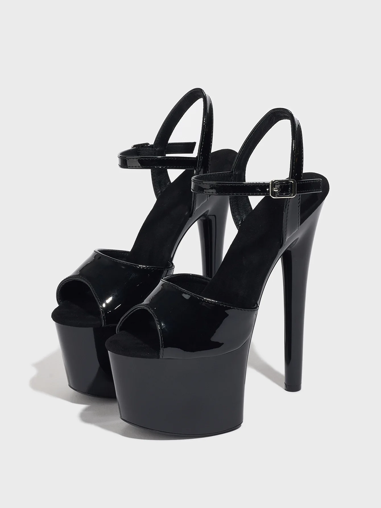 17CM Super High Heel Black Buckle Strap Fetish Sandals Women Plus Size Summer Party Dress Platform Shoes Woman Pole Dance Heels