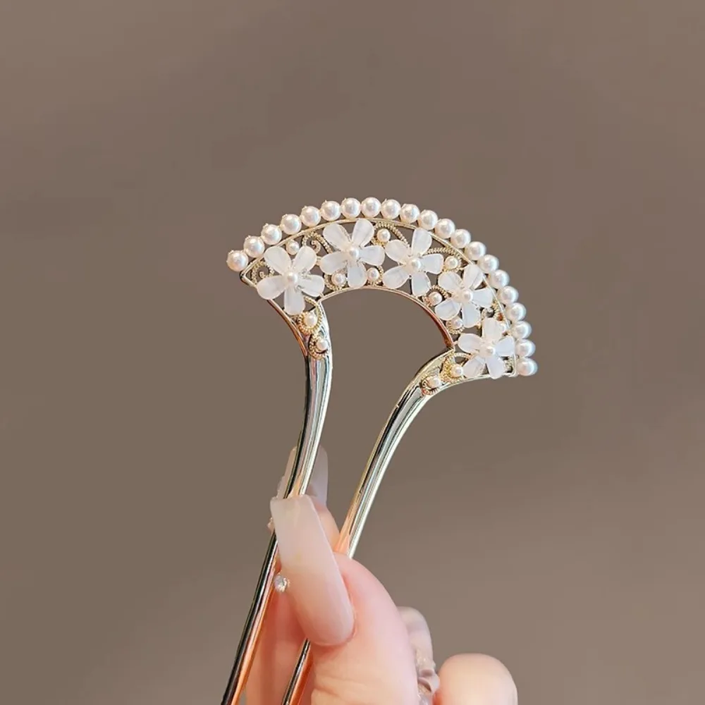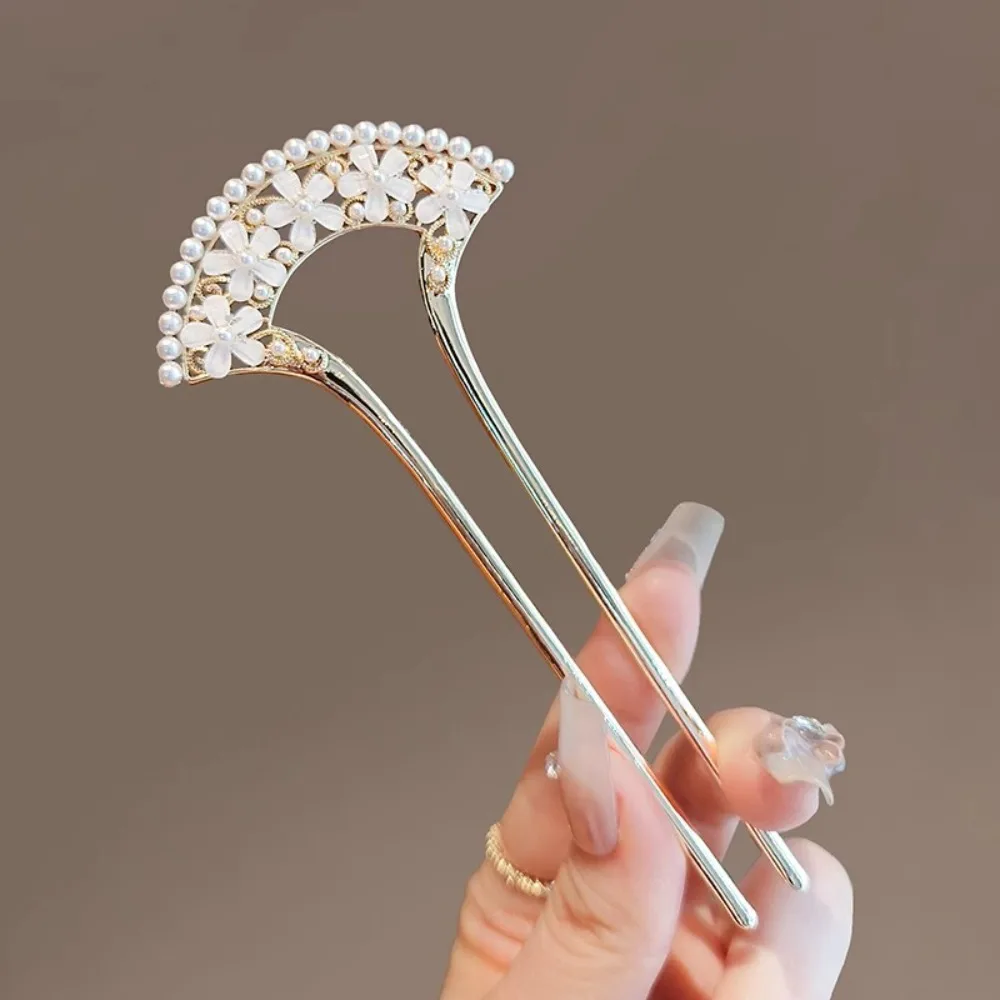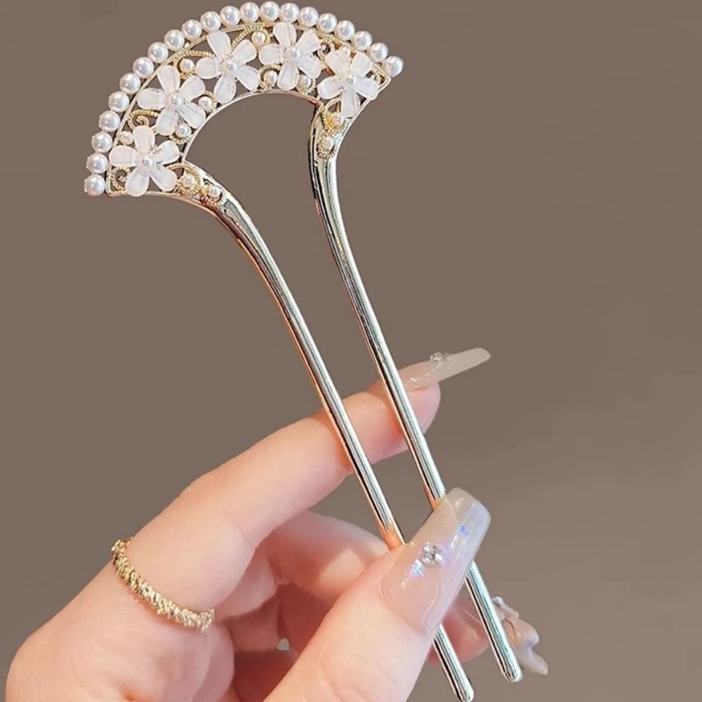 1pc Exquisite Fashion Elegant Vintage Pearl U-Pin Hair Accessory with Column Headpiece Wholesale Retro Hairpins Hair Jewelry