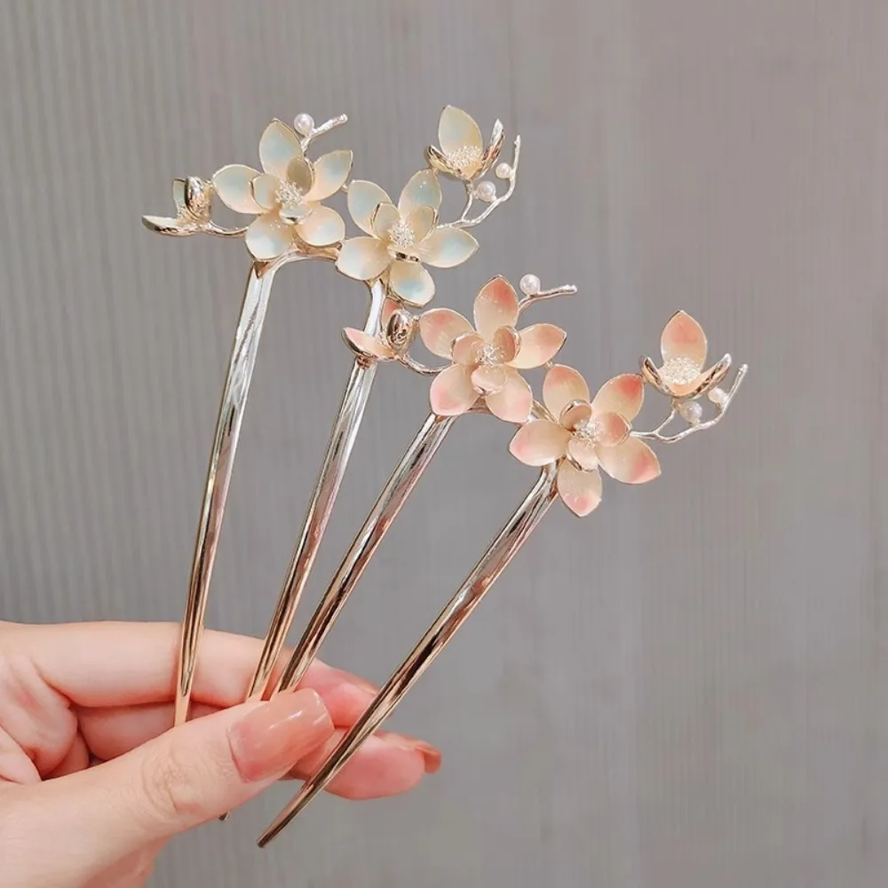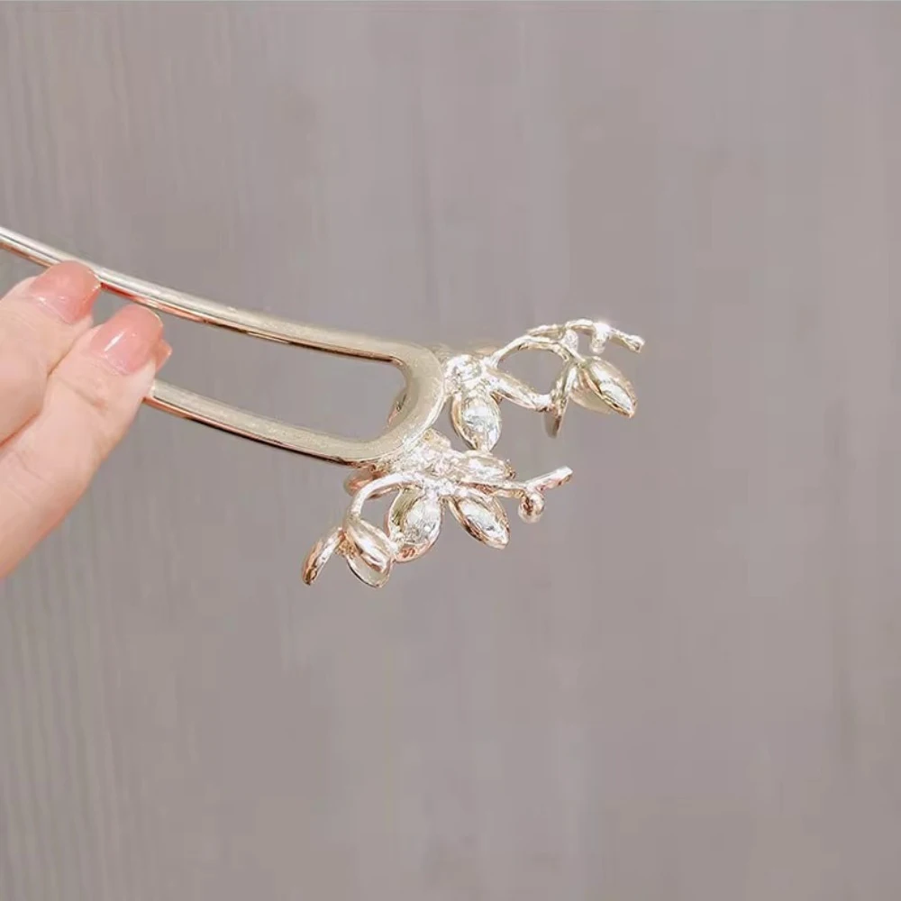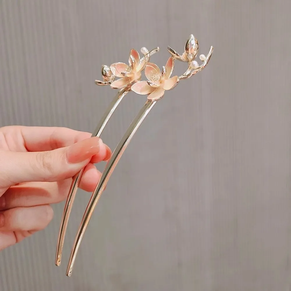 1pc U Shaped Flower Hair Sticks Forks Women Hair Bun Maker Jewelry Vintage Girls Flower Hairpins Clip Headwear Hair Accessories