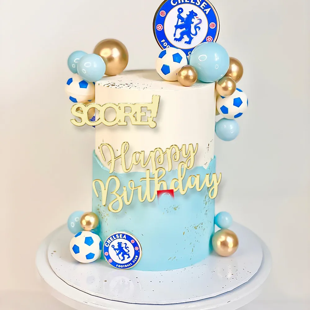 1set Gold Acrylic Happy Birthday Cake Topper Kids Football Birthday Party Cake Toppers Baby Shower Cake Gift Dessert Decoration