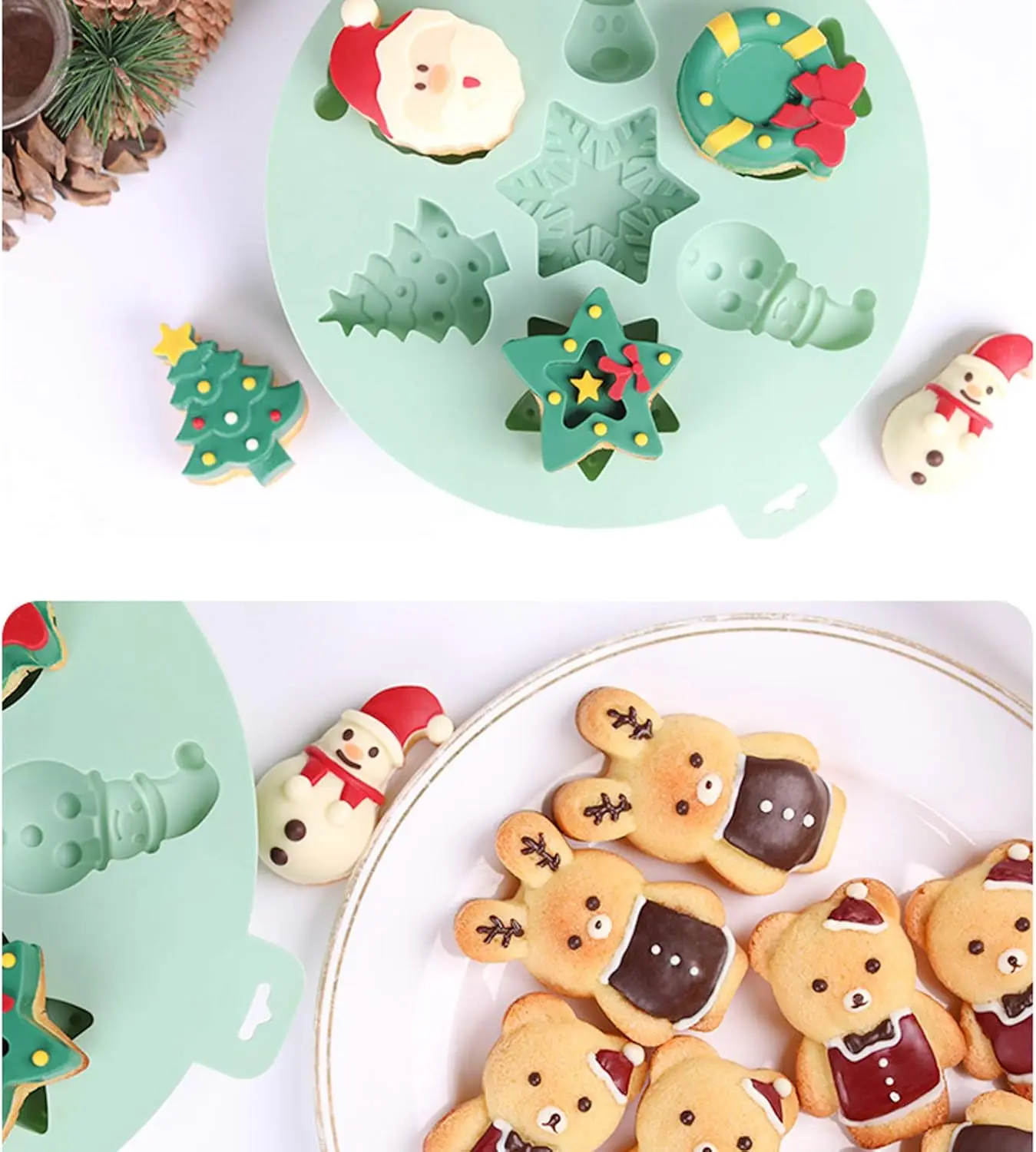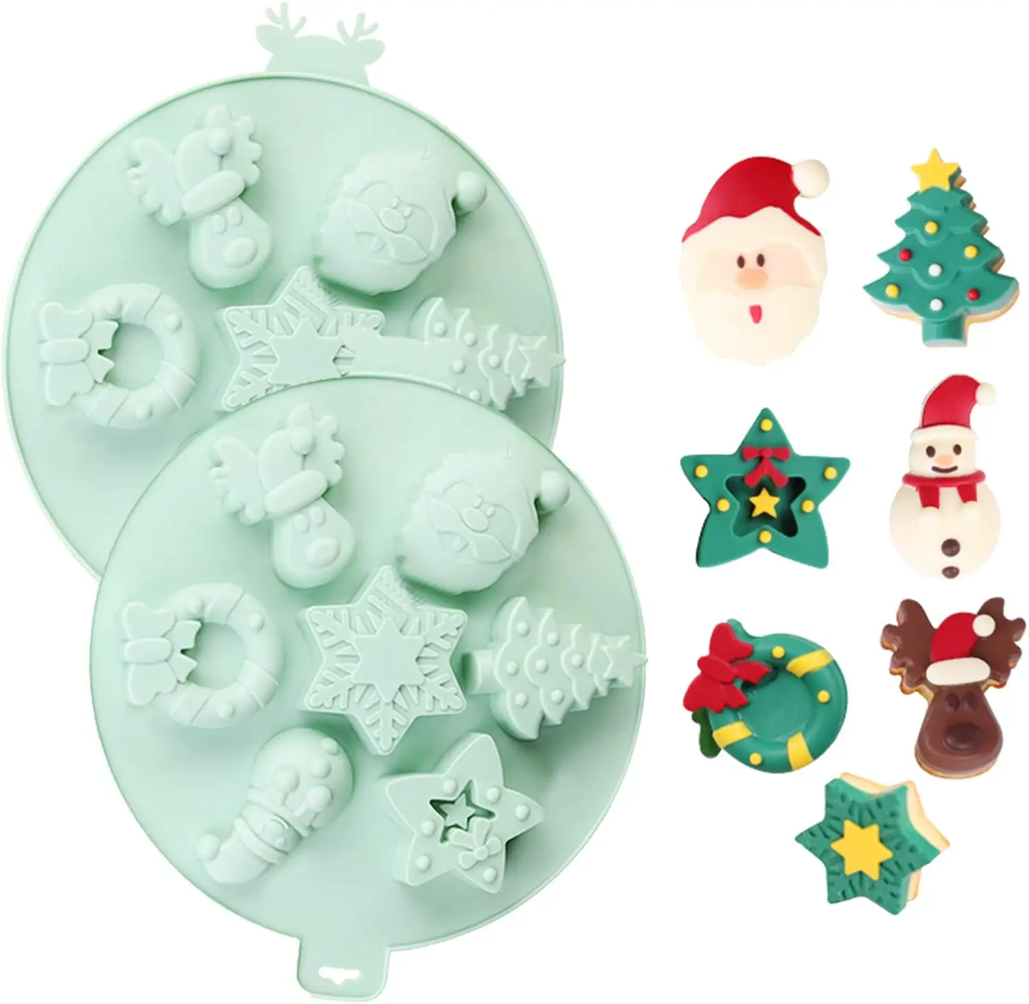 2 Pack Christmas Silicone Molds, Non-Stick Chocolate Jello Baking mold for Party Xmas Gift, with Christmas Tree Santa Snowman