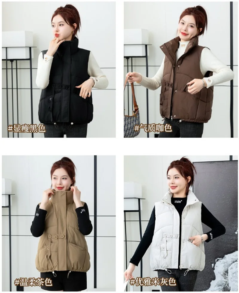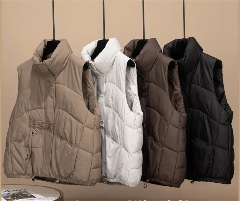 2024 New Autumn Winter Down Cotton Vest Women Short Jacket Fashion All-Match Sleeveless Waistcoat Vests Female Coat Outerwear