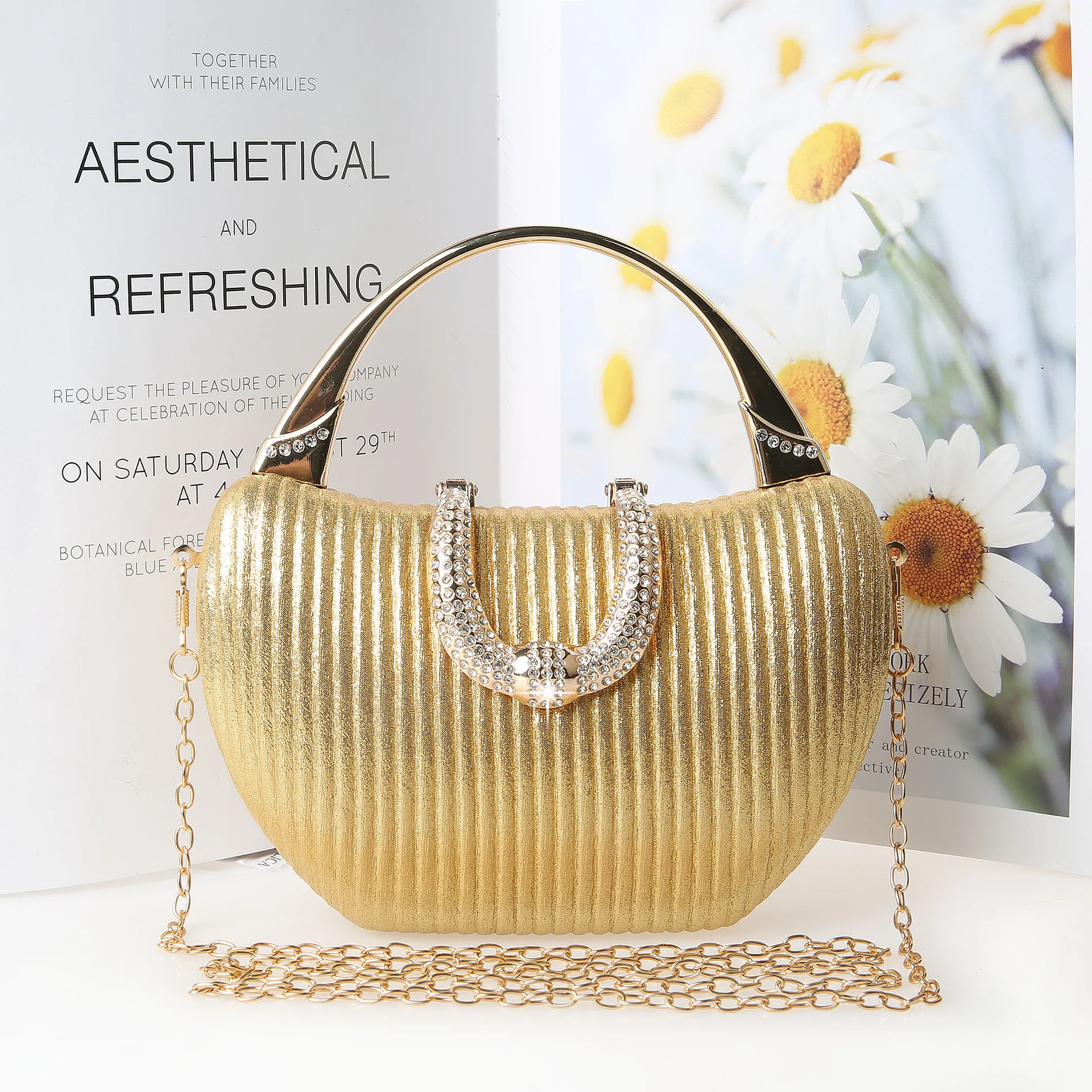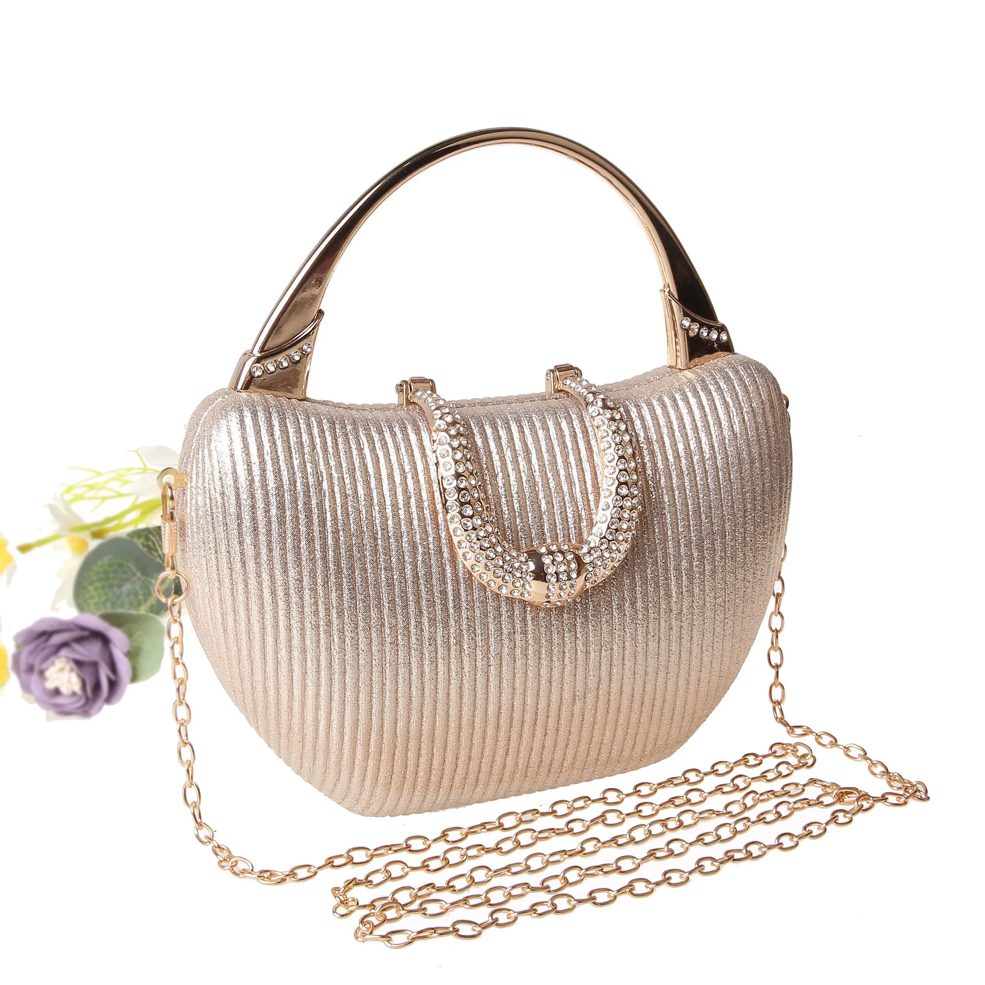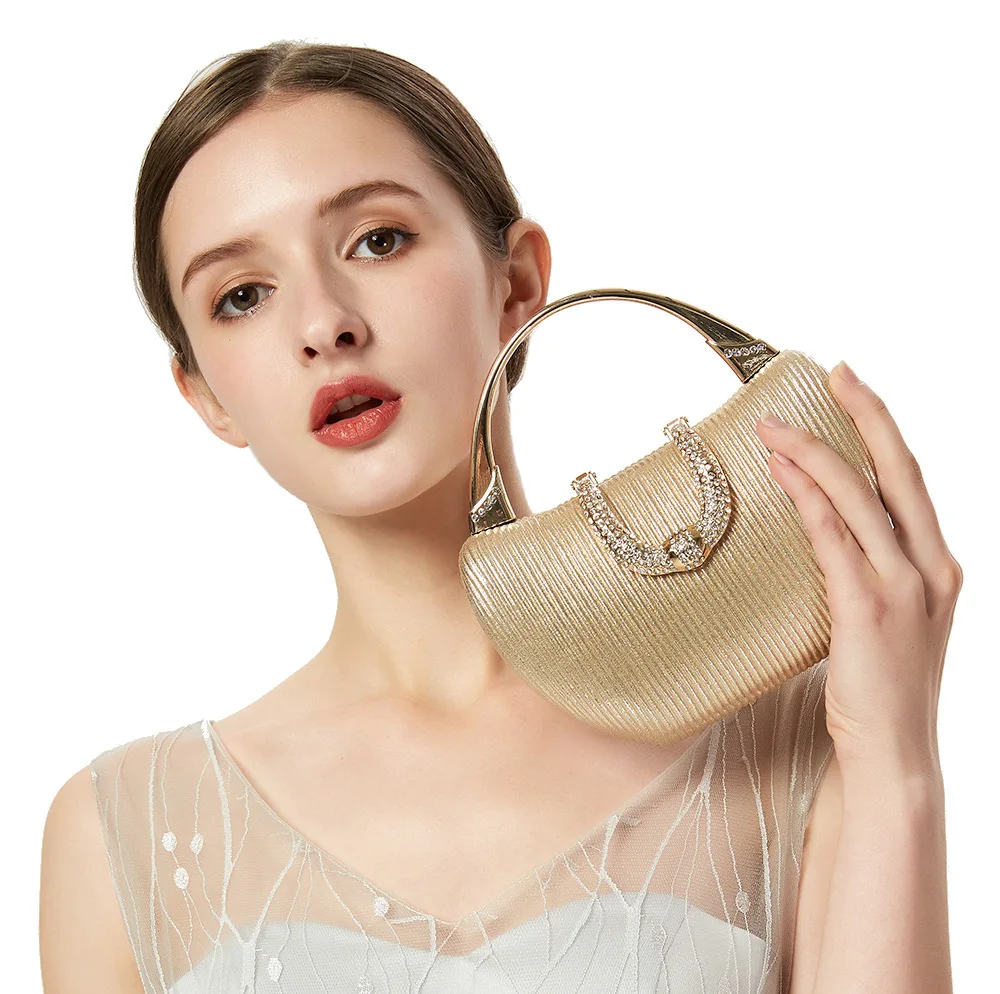 2024 New Vintage Evening Bag Diamond Sequined Clutch Hand Bag Bride Bag Gold Wedding Purse Female Handbag