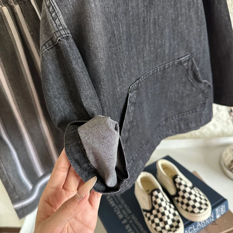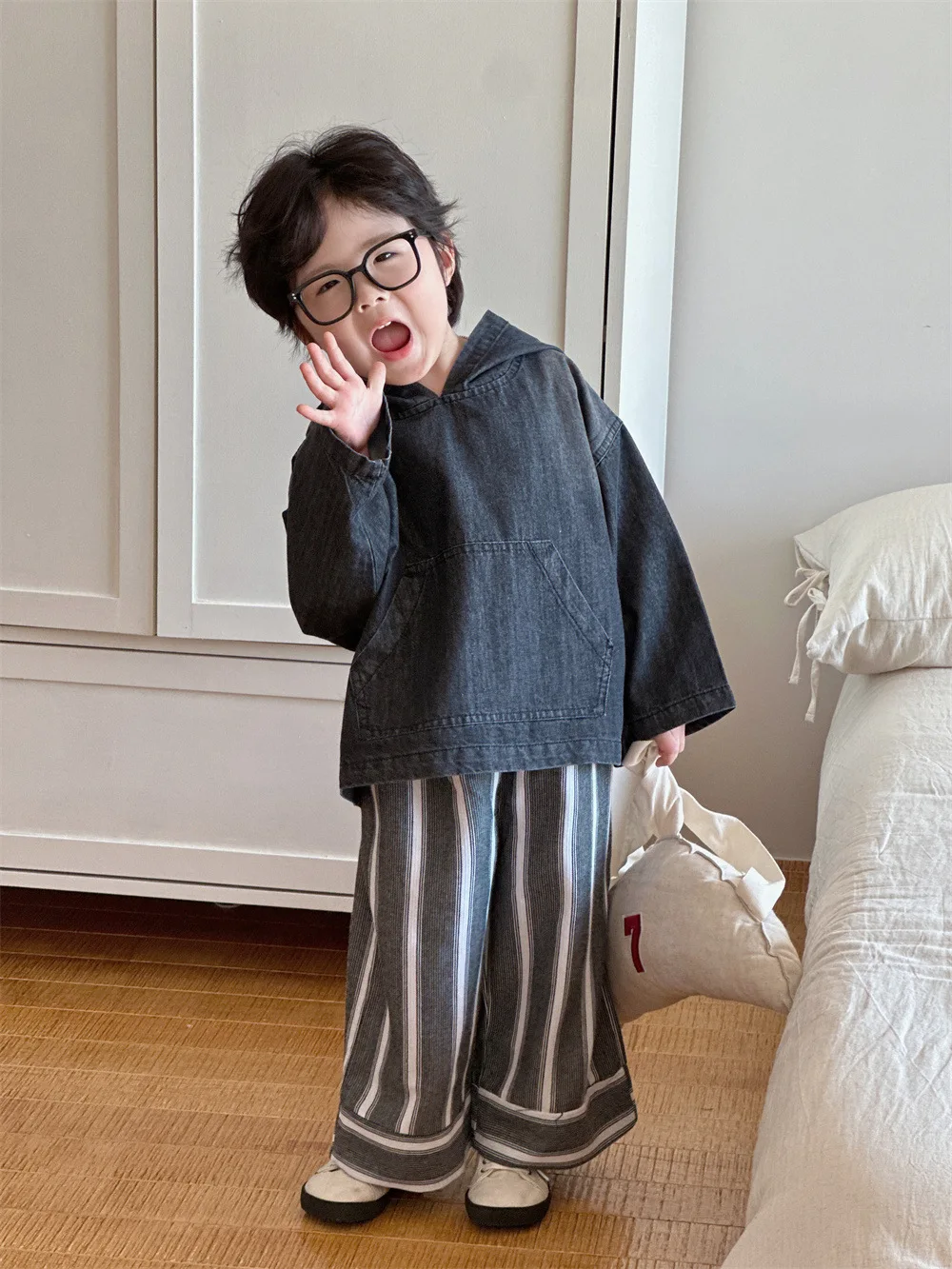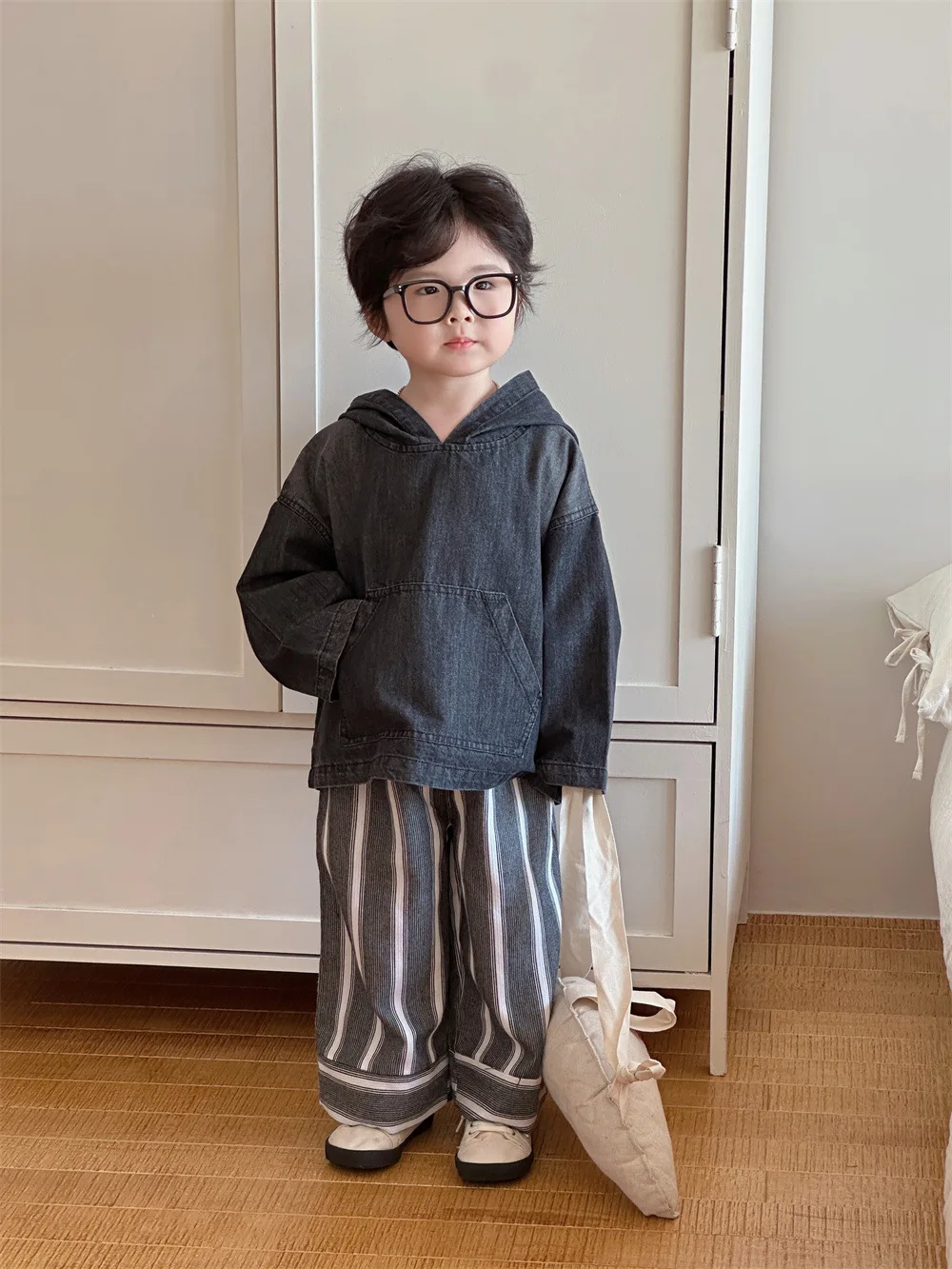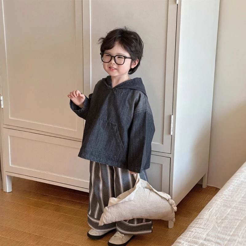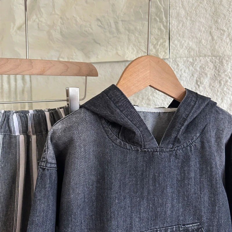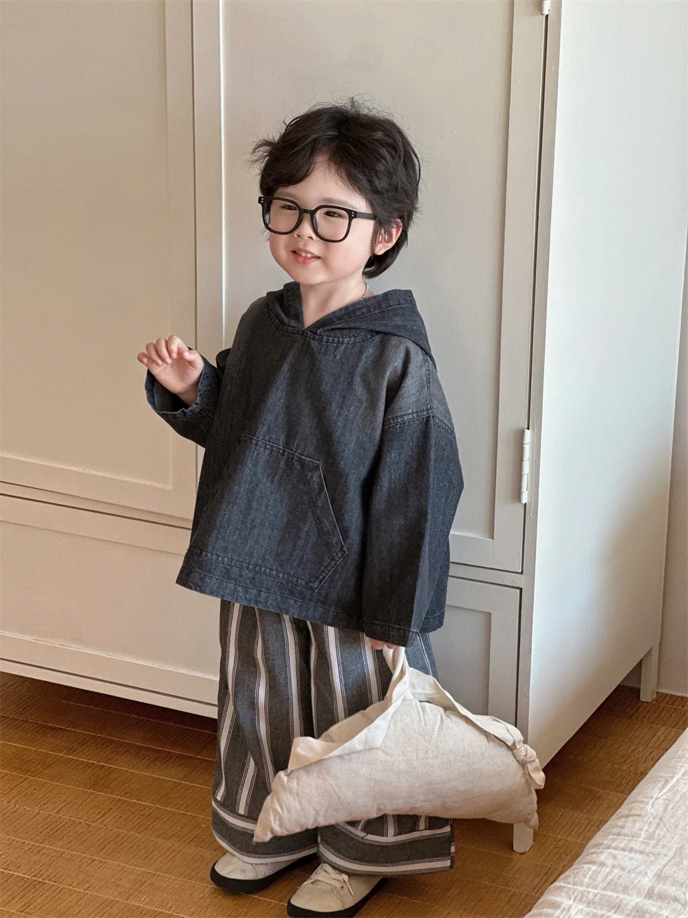 2025 Autumn/winter New Children's Retro Forest Style Design with Original Color Hooded Denim Jacket