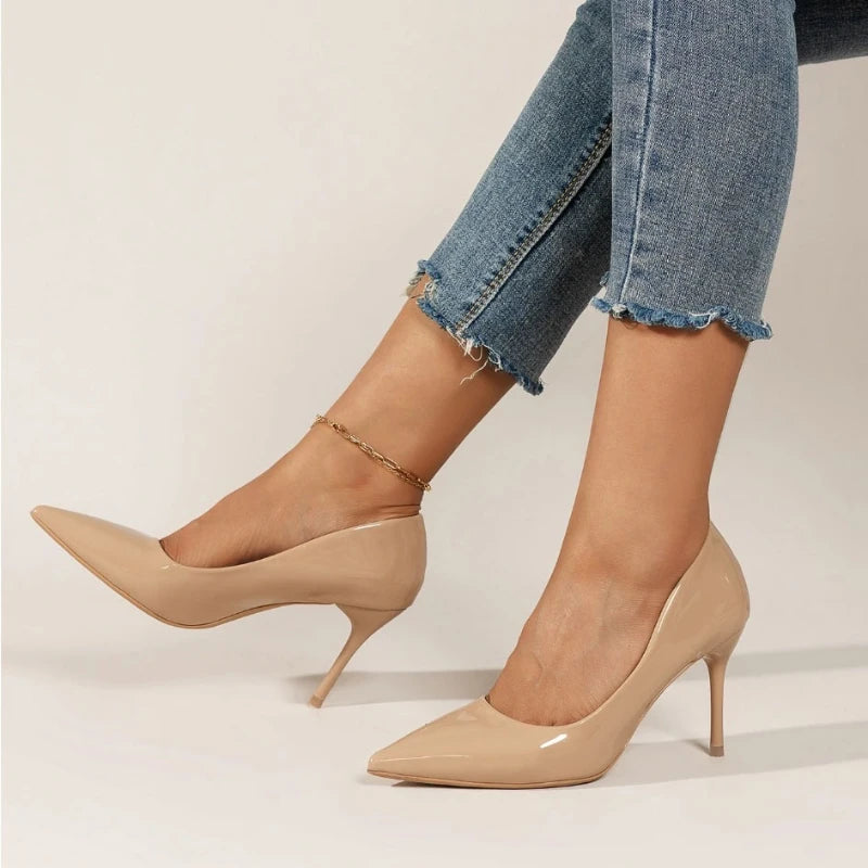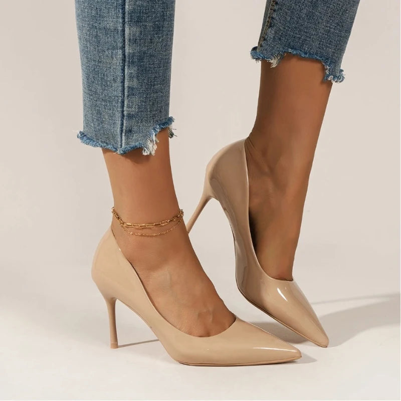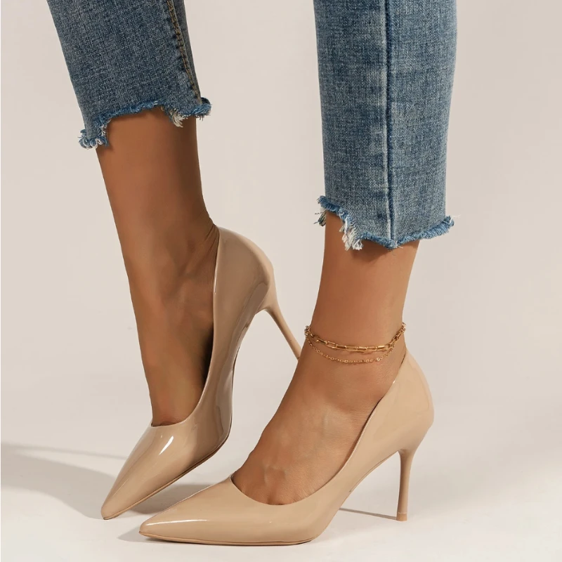 2025 Brand New Women's High Heels Fashionable Patent Leather Sexy Pointed Toe Comfortable Stiletto Wedding Shoes Size