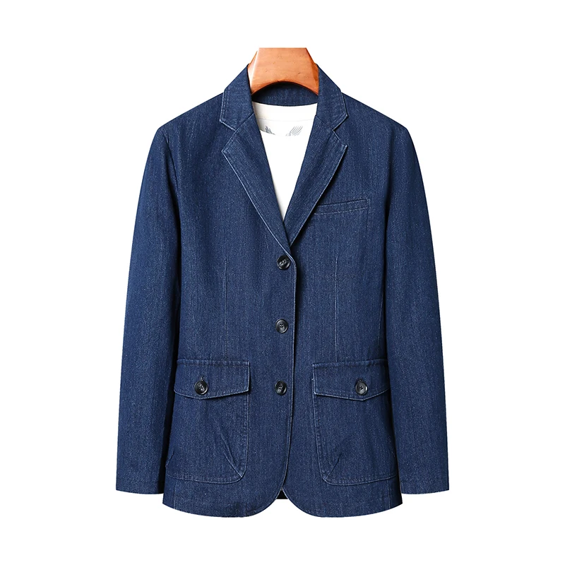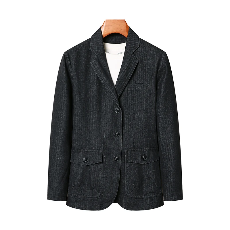 2025 Men Solid Denim Jackets Fashion Blazer Middle-aged Loose Men Vintage Jeans Jackets Hommes Slim Fit Cotton Casual Black Blue
