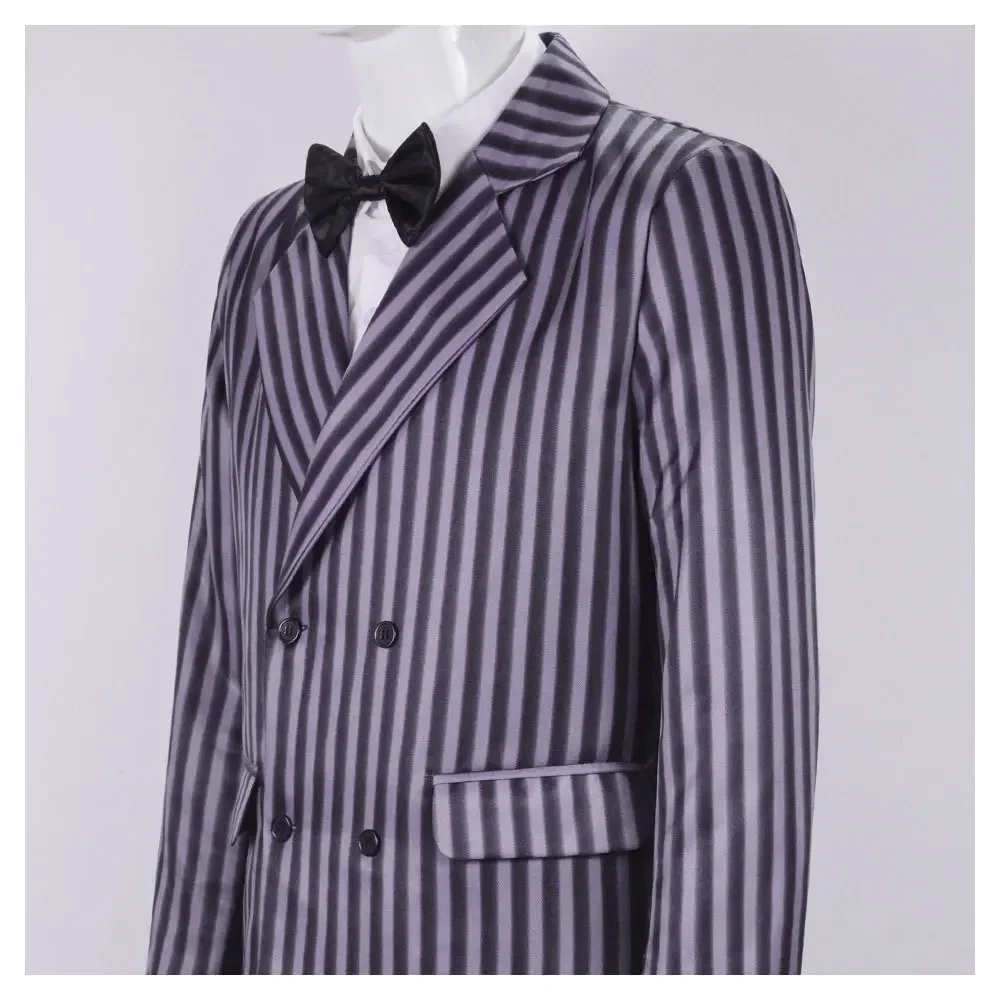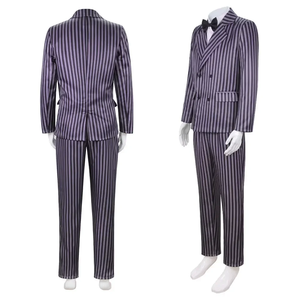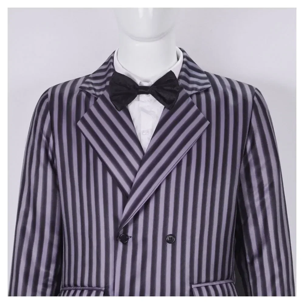 2025 New Gomez Addams Cosplay Anime Morticia Costume Dress Halloween Carnival Outfit Adult Kid Coat Shirt Pant Tie Suit Par☆☆☆aa