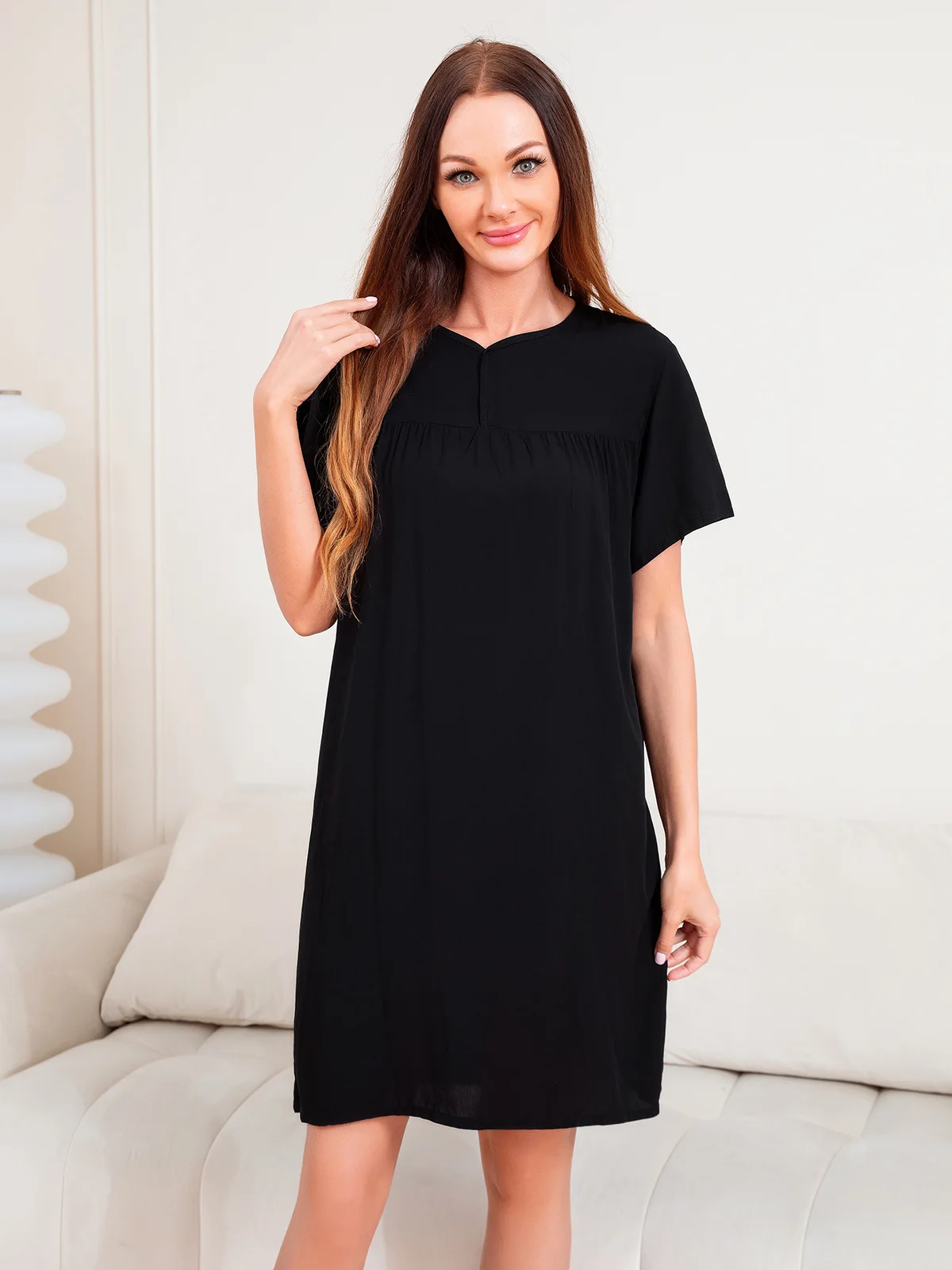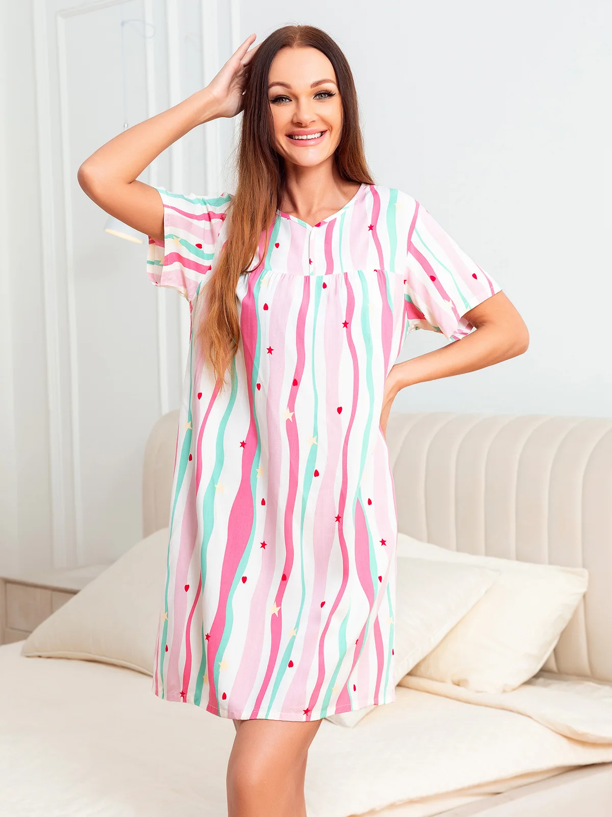 2025 New Night Dress Woman Viscose Lingerie Nightwear Women Neck Sleepwear Sexy Print Home Dressing Gown Summer Outwear