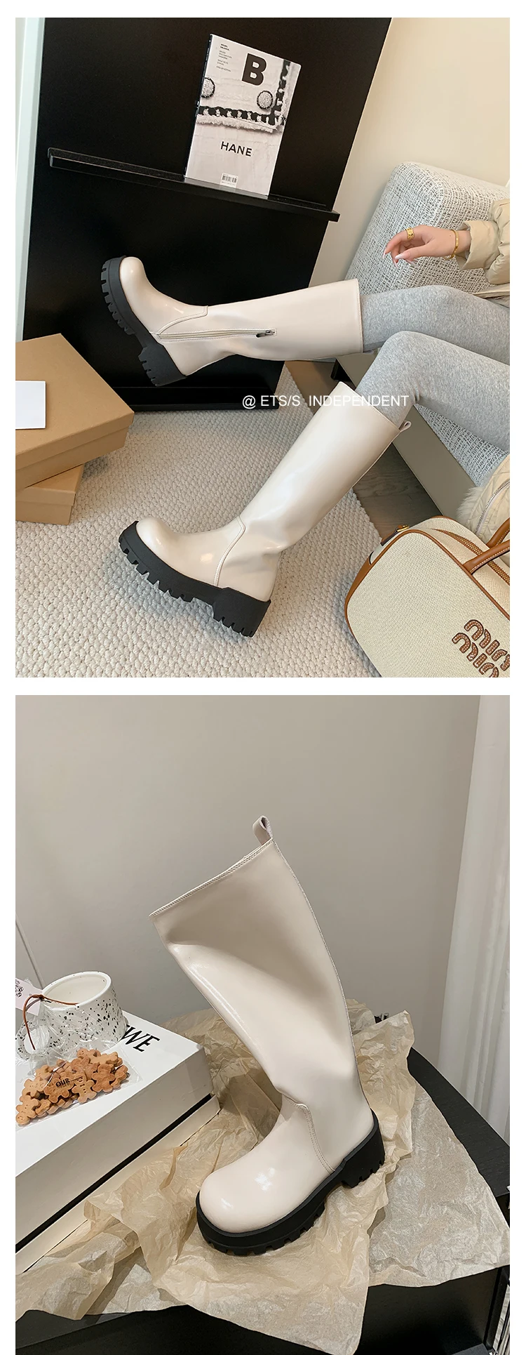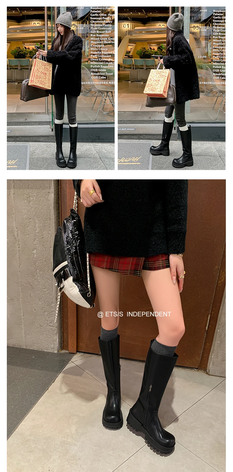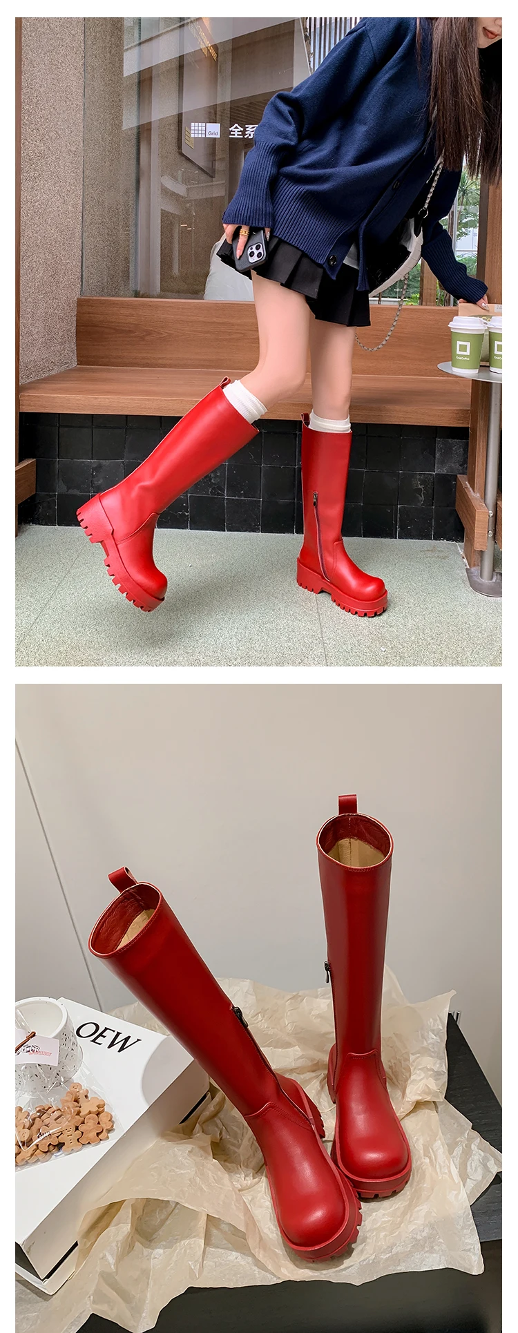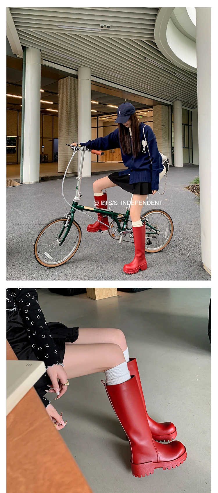 2025 New Platform Women Riding Boots Genuine Leather Knee-high Modern Rain Boots Outdoor Party Shoes