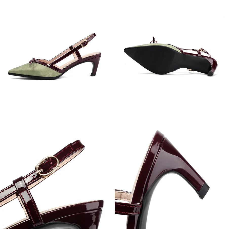 2025 New Summer Comfortable Black Green Women Slingback Sandals Sexy 5cm Med Thin Heels Lady Dress Shoes Plus Big Size 43 46