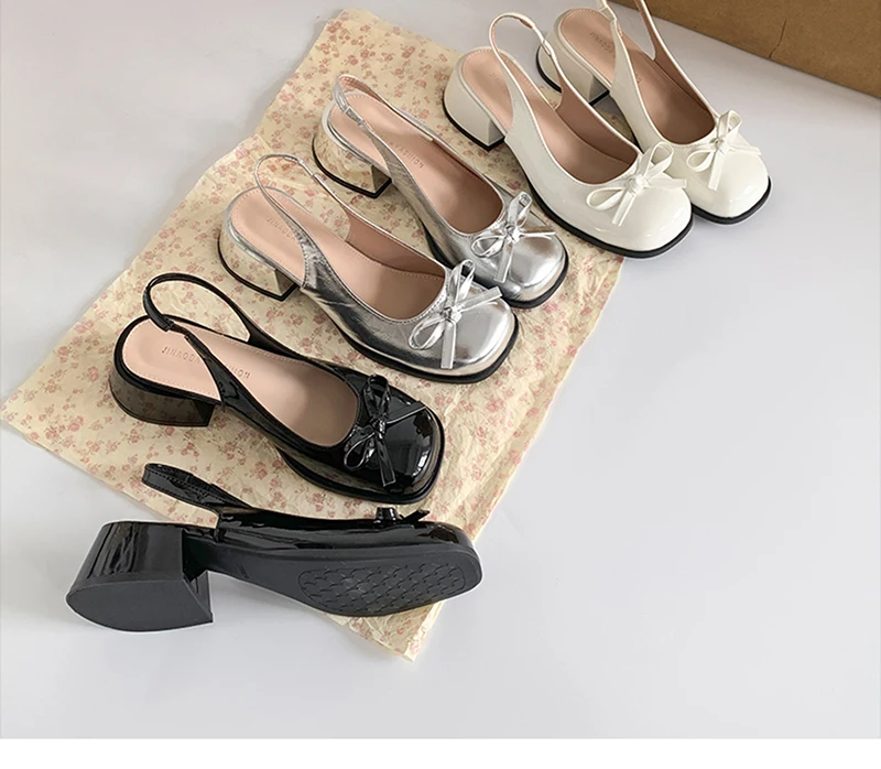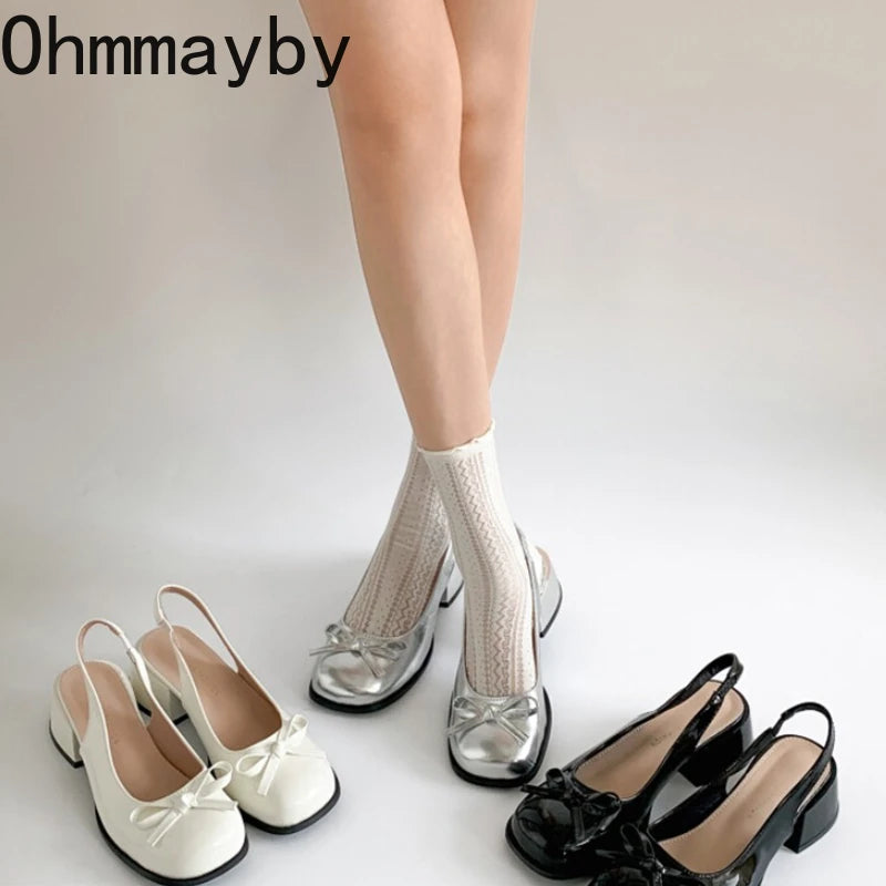 2025 New Summer Thick Heel Women Sandals Elegant Butterfly-knot Ladies Slip On Singbacks Dress Shoes