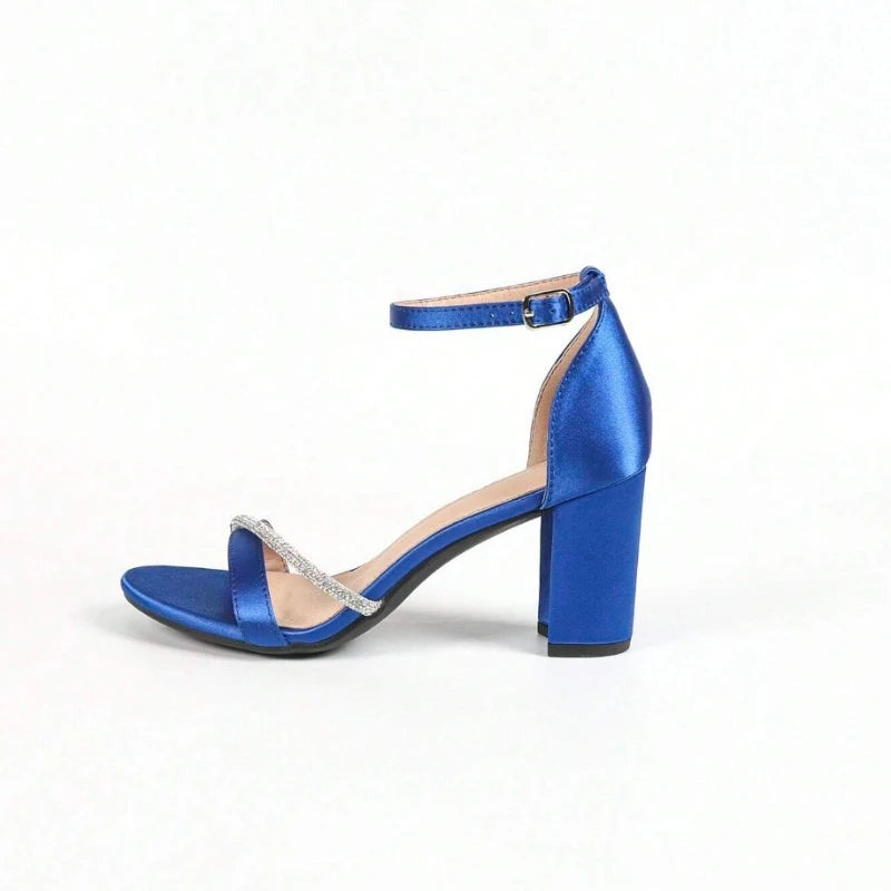 2025 Summer New Coarse Heel Sandals with Bright Diamond French Strap High Heel Sandals
