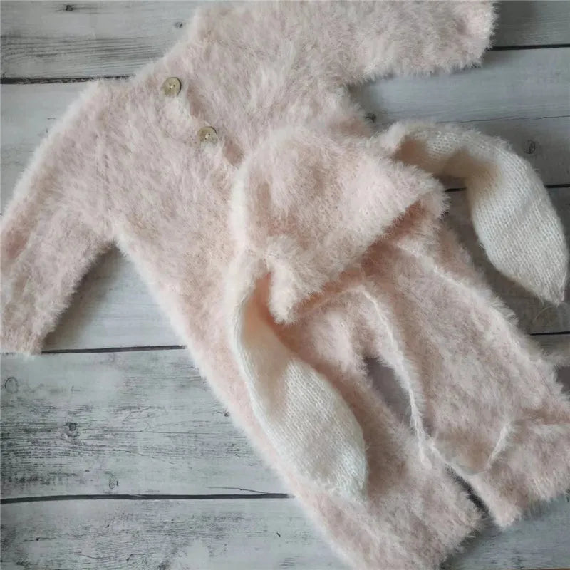 2025Newborn fuzzy bunny romper for baby photography props,pink rabbit for photo clothes