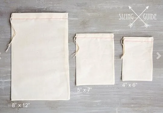 >>My muslin bags are 100% cotton muslin, in an ivory/off white color. The bags can vary ever so slightly in size - this is a manufacturer standard and is out of my control. All bags are hand done and image placement can vary slightly from bag to bag.