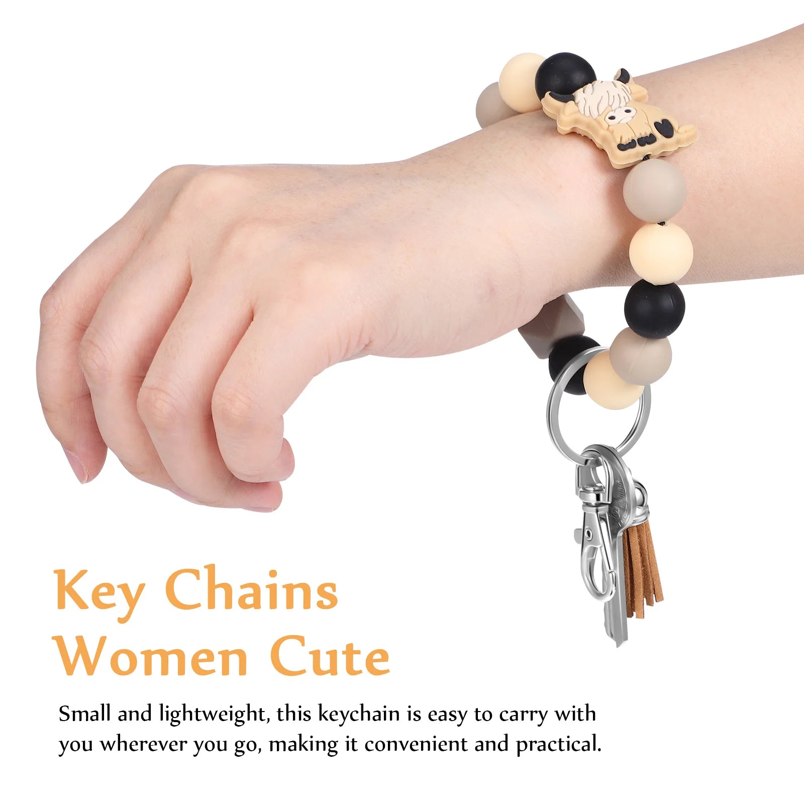 2Pcs Cute Cartoon Cow Keychain Silicone Accessories For Wristlet Bag Charms Animal Key Rings Keychain Pendant Keychains Key Ring