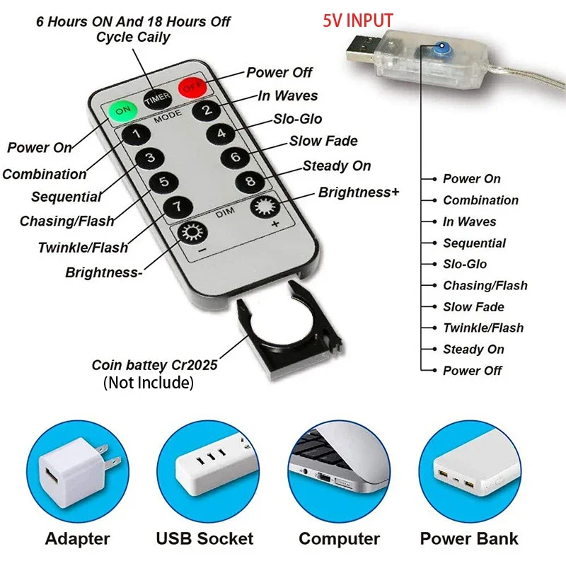 3/6M LED Lights String Fairy Decoration USB Plug Holiday Curtain Lamp 8 Mode for Home Garden Christmas Party New Year Wedding