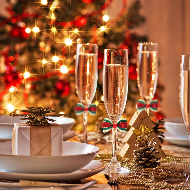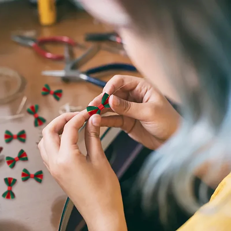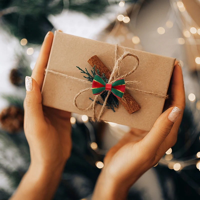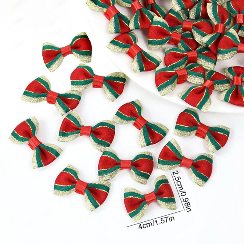 30Pcs Christmas Mini Bow Knot Xmas Tree Ornaments DIY Wreath Craft Girls Hair Accessories 2025 New Year Gift Wrapping Decoration