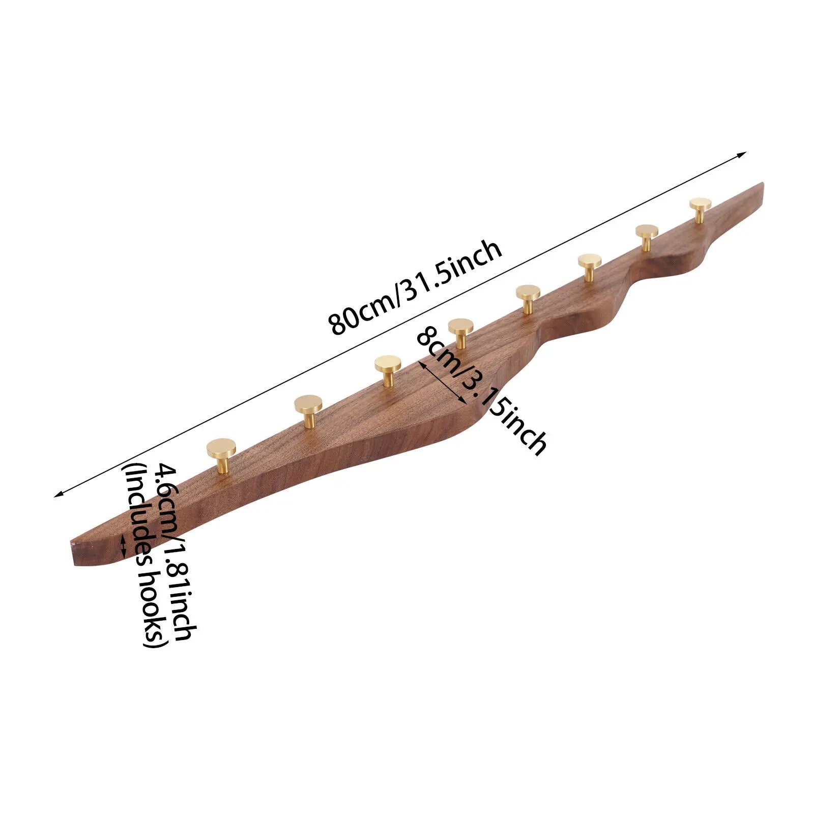 Elegant Appearance: Mimicking the rugged undulating contours of a mountain range, the wood's rich dark brown tones and grain patterns are full of the tones and textures of a forested landscape, reminiscent of the natural variations found in nature. Gold hooks have been cleverly placed to represent the sunlight that illuminates the mountain tops, adding a touch of elegance and design, contrasting with the darker colors of the timber, yet creating a sense of harmony and balance.
