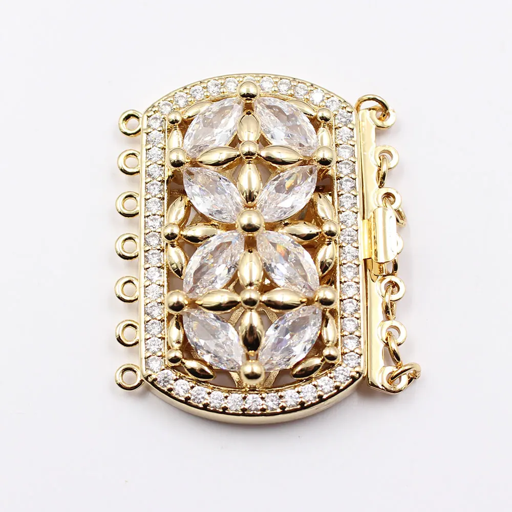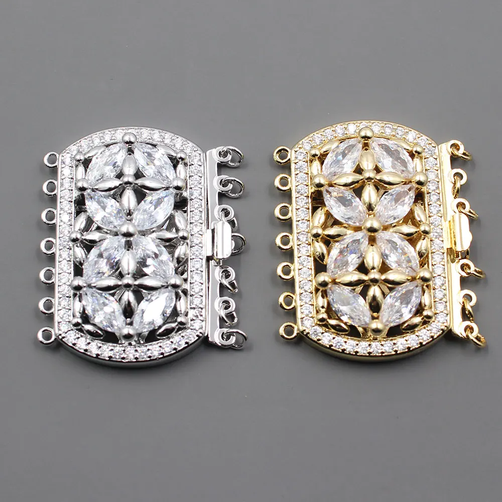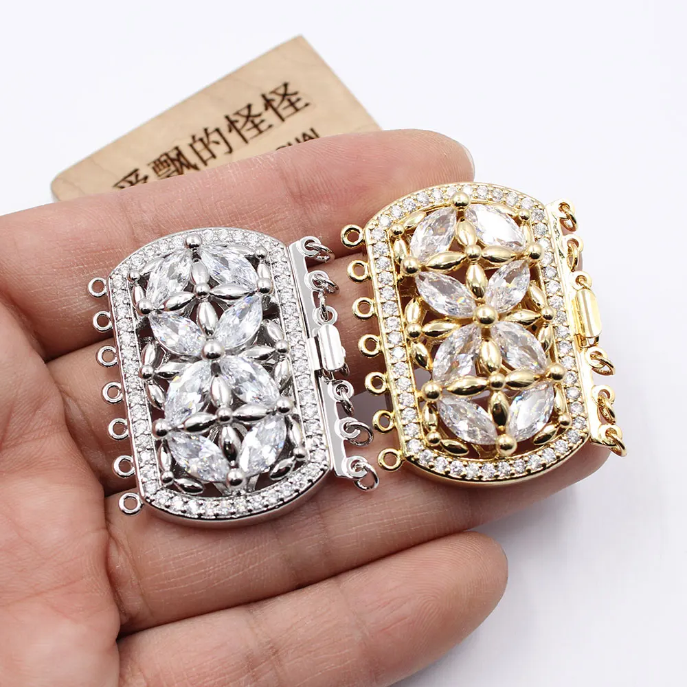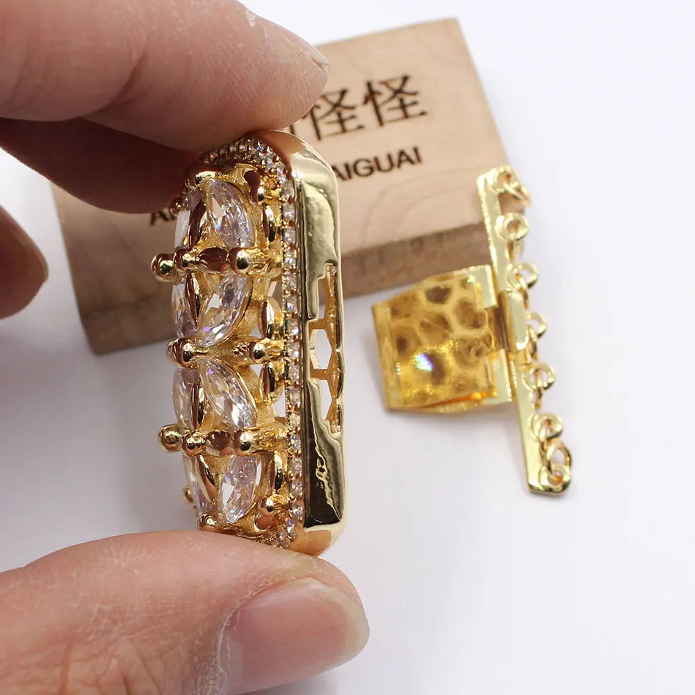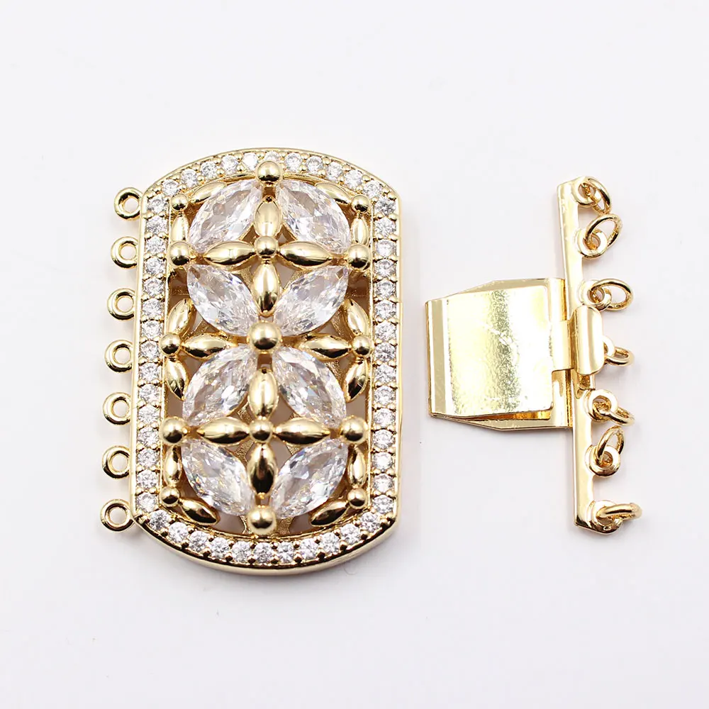 33x42mm 1 Pcs 7 Rows Rectangle Clear Crystal Copper CZ Gold Plated Clasp For Pearl Necklace Bracelet Making DIY Craft Accessorie