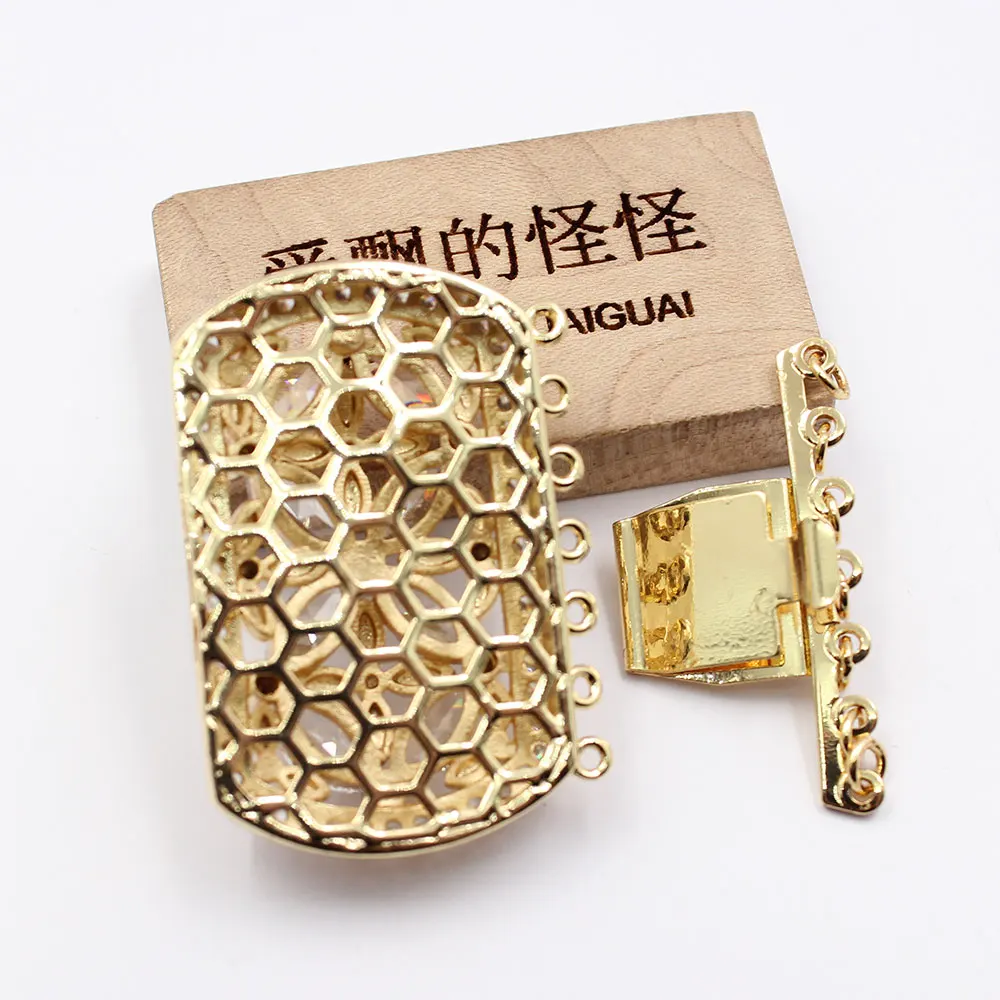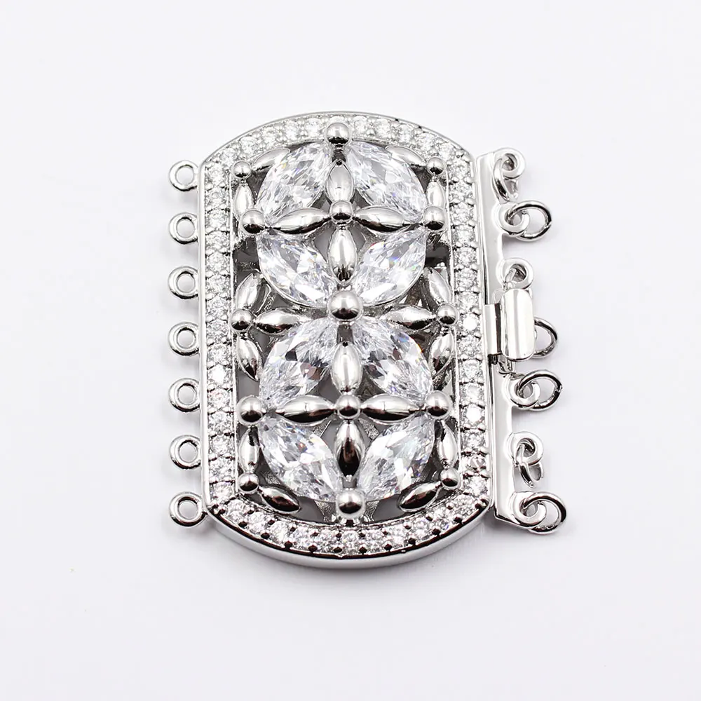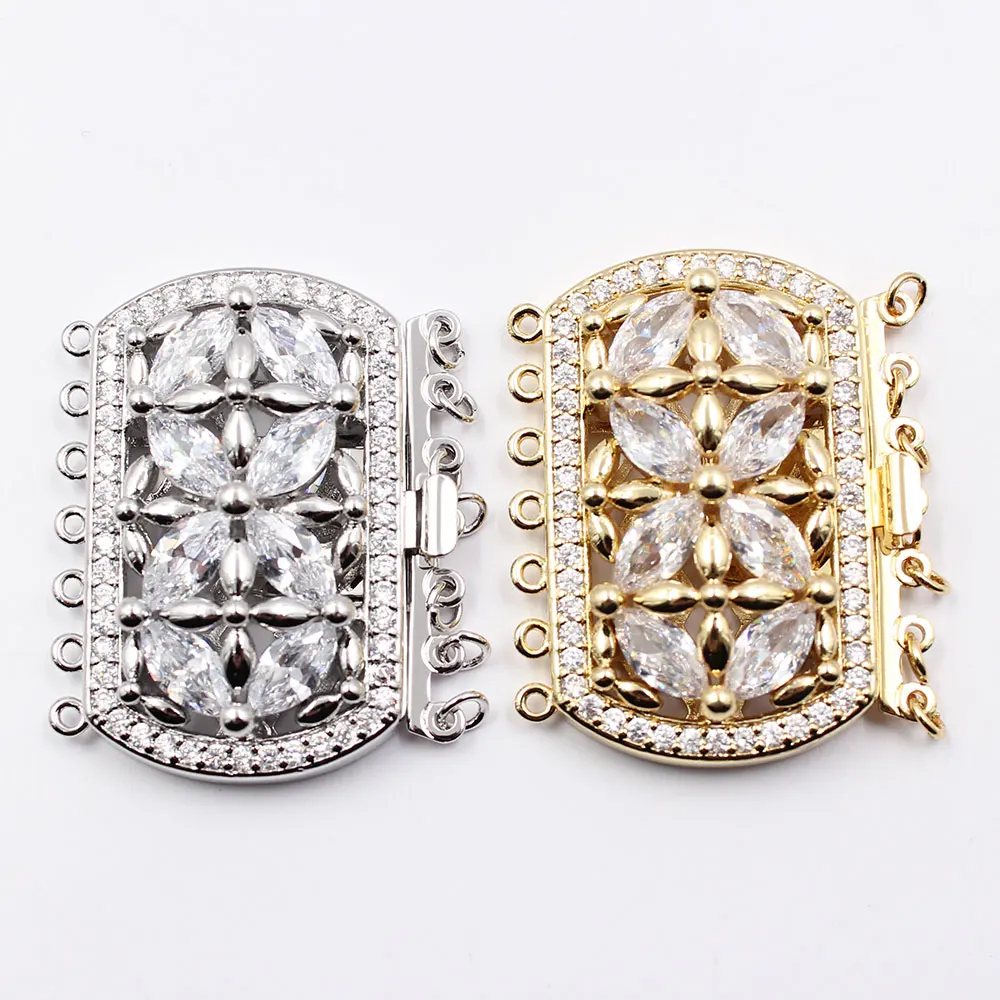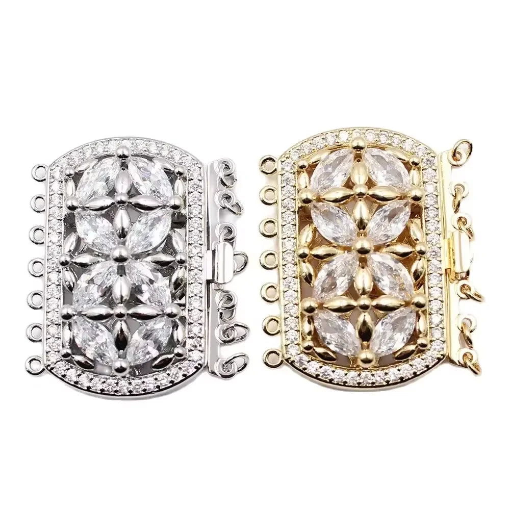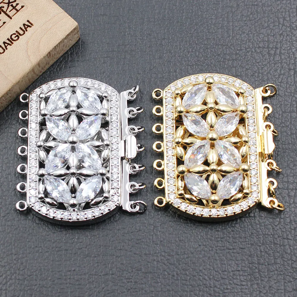 33x42mm 1 Pcs 7 Rows Rectangle Clear Crystal Copper CZ Gold Plated Clasp For Pearl Necklace Bracelet Making DIY Craft Accessorie