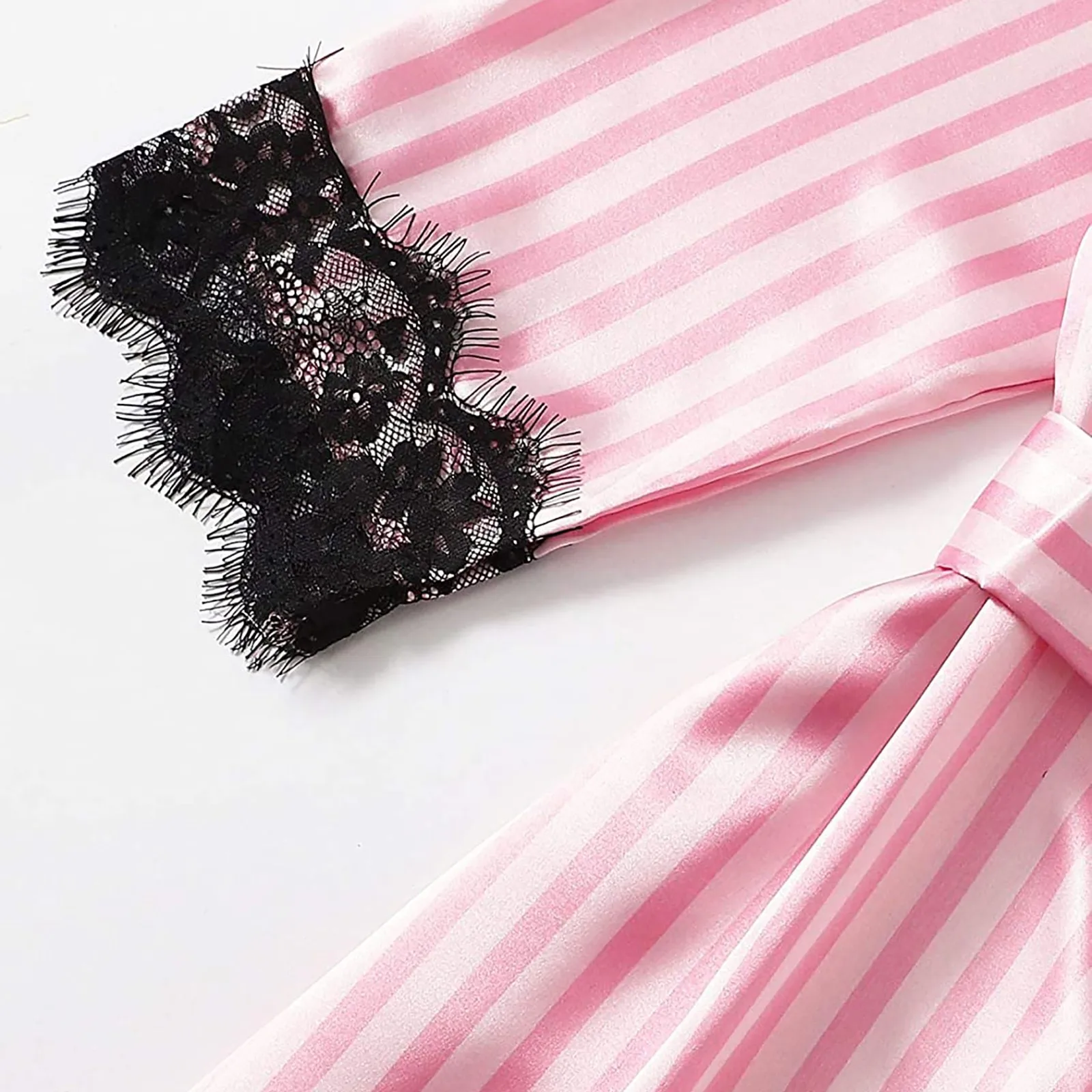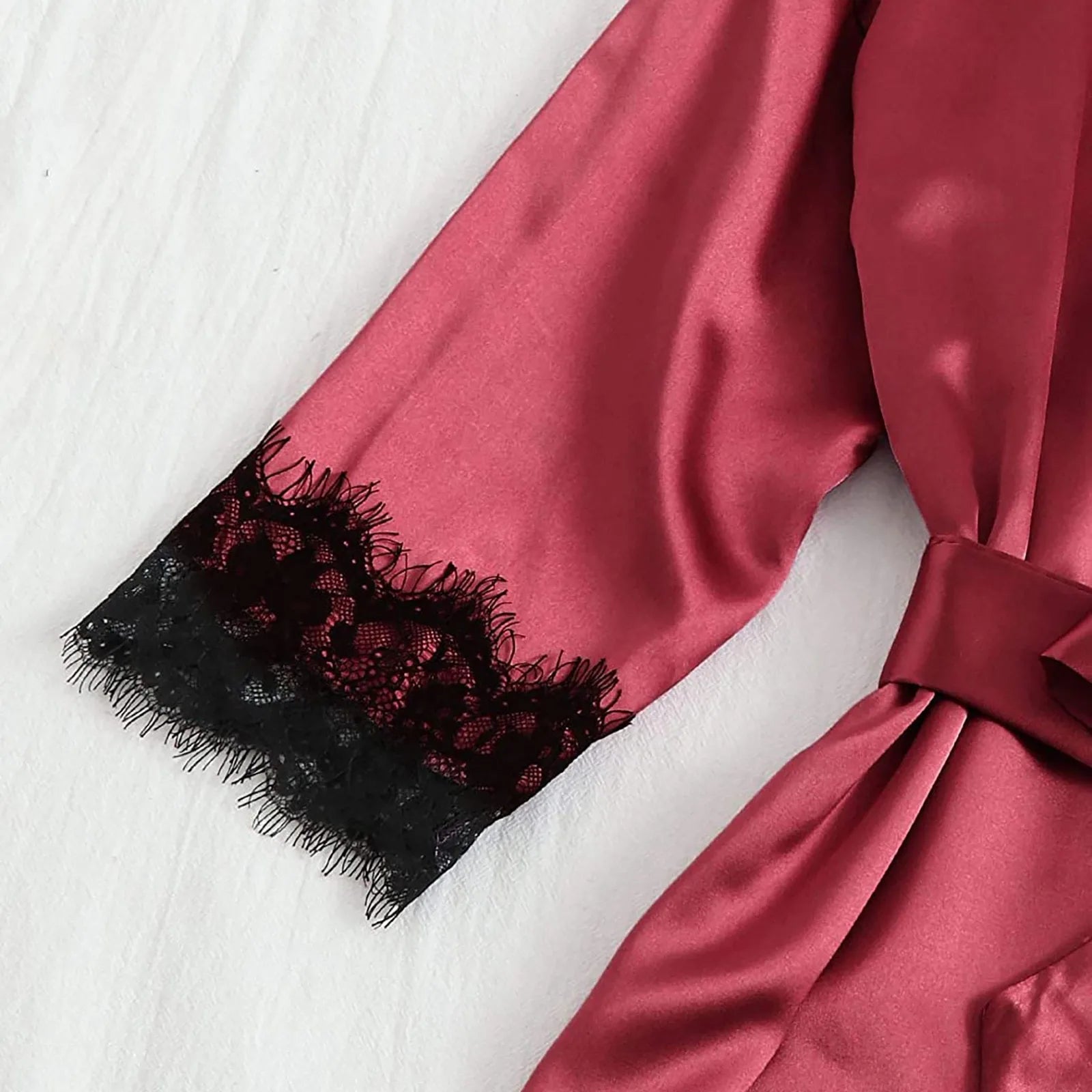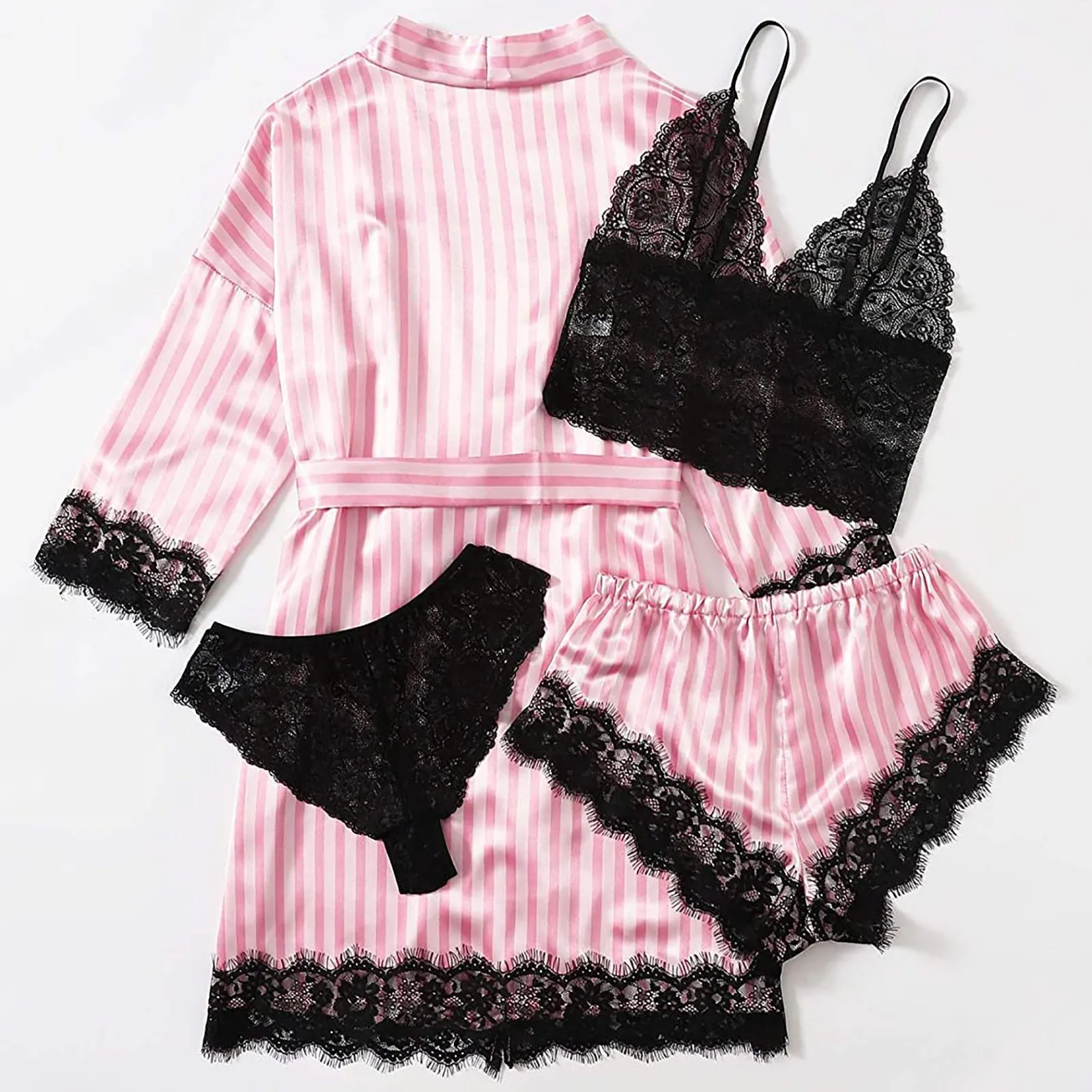 4-Piece Women Sexy Garter Lingerie Set Robes Lace Bodysuit Deep-V Neck Underwear