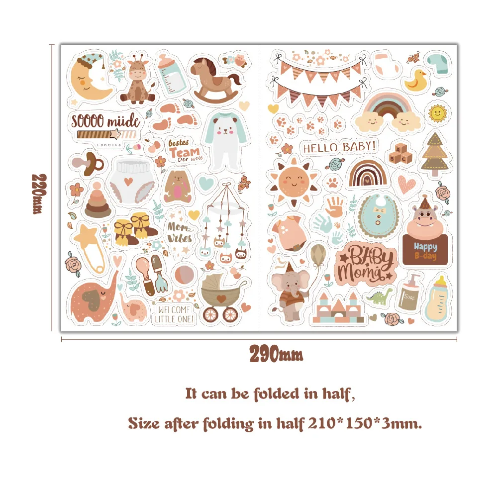 4 sheets/pack Baby Scrapbook Stickers Scrapbooking Baby Girl Boy Sticker for Newborn Baby Clothes,DIY Craft, Photo Album Journal