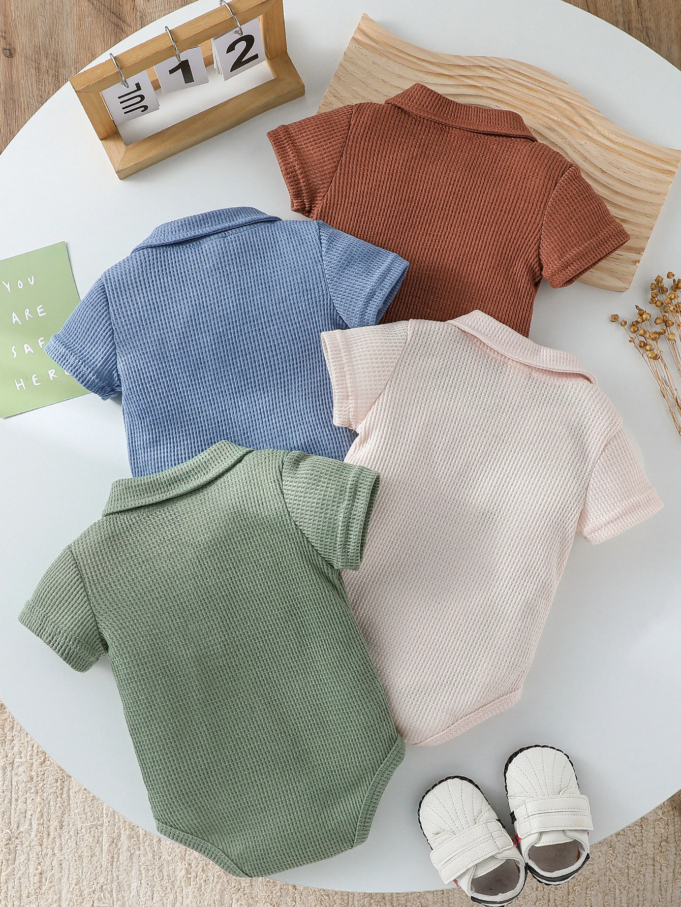 4Pcs/ Baby Boys Four Seasons Fashion Waffle pattern Short Sleeve Bodysuits For 0-1Y Casual Daily Wear Romper Clothes Jumpsuit