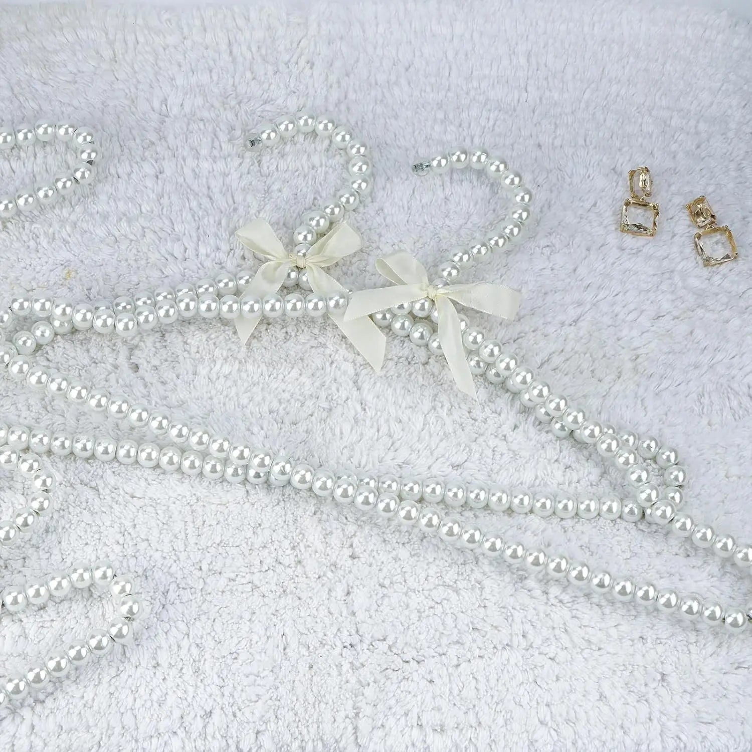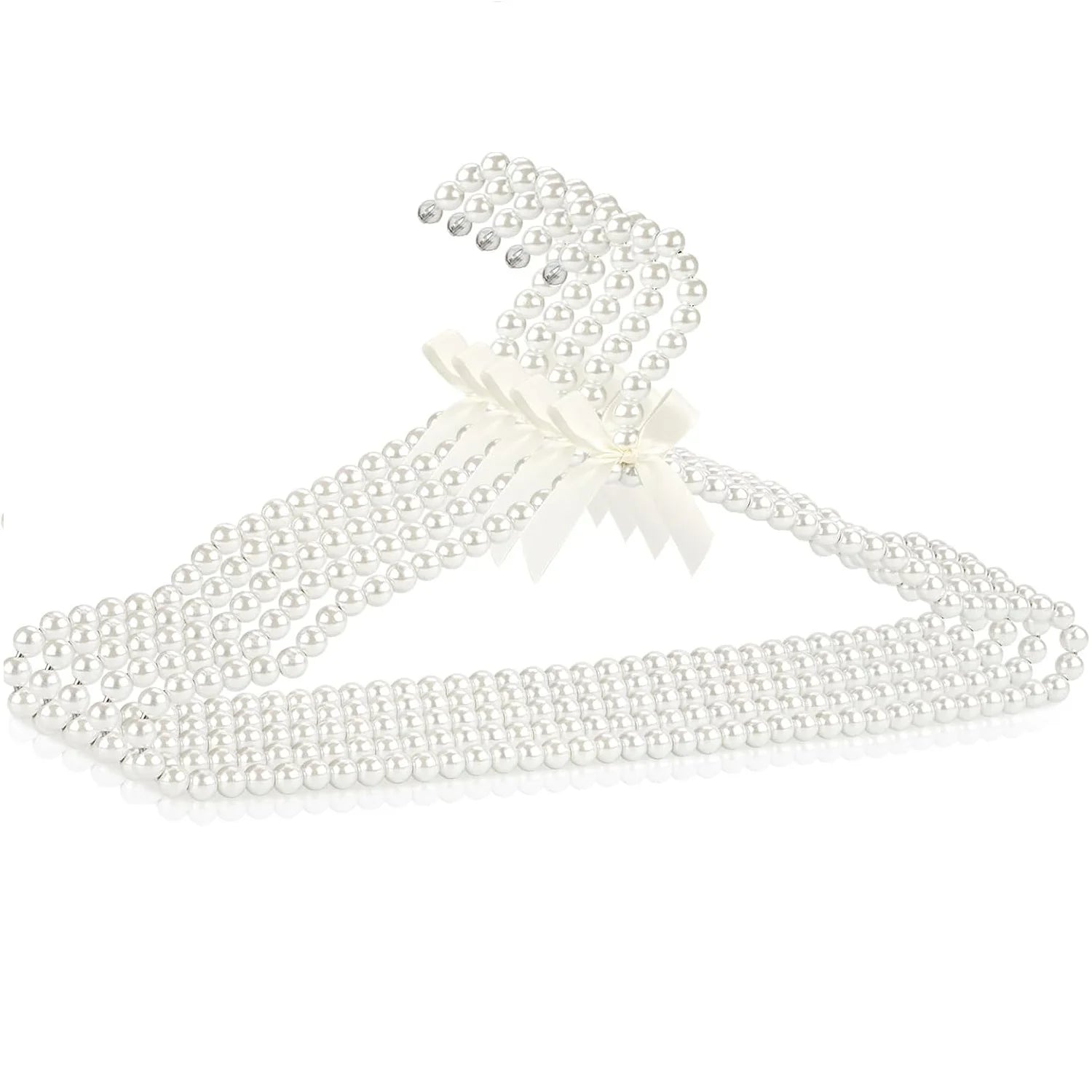 Faux pearl clothes hangers made of smooth plastic pearl, protect delicate fabrics.
