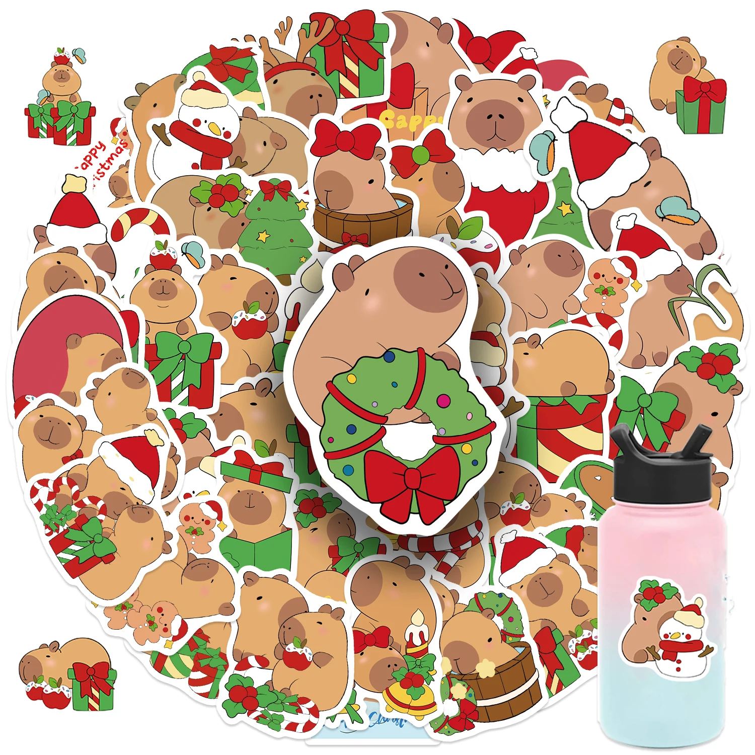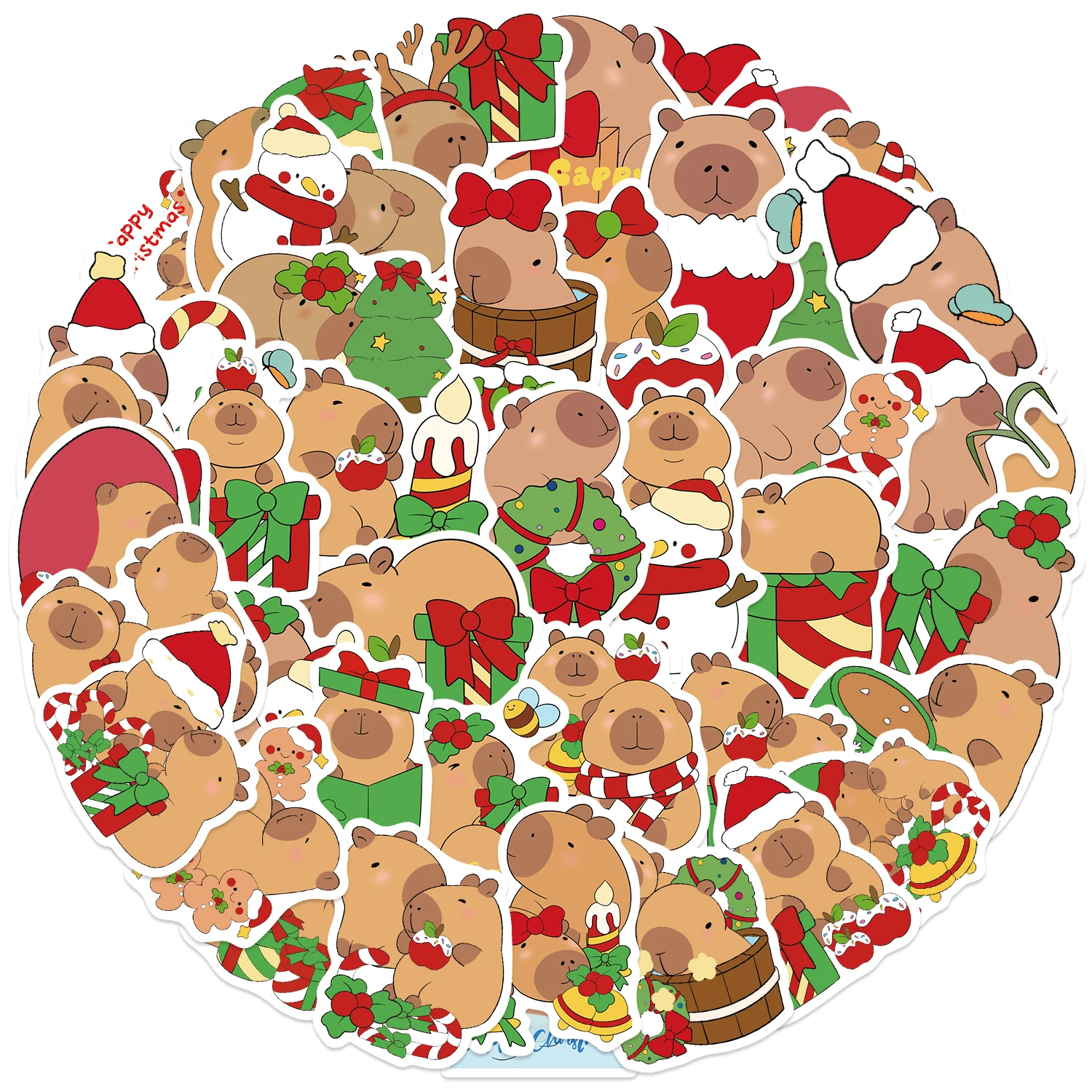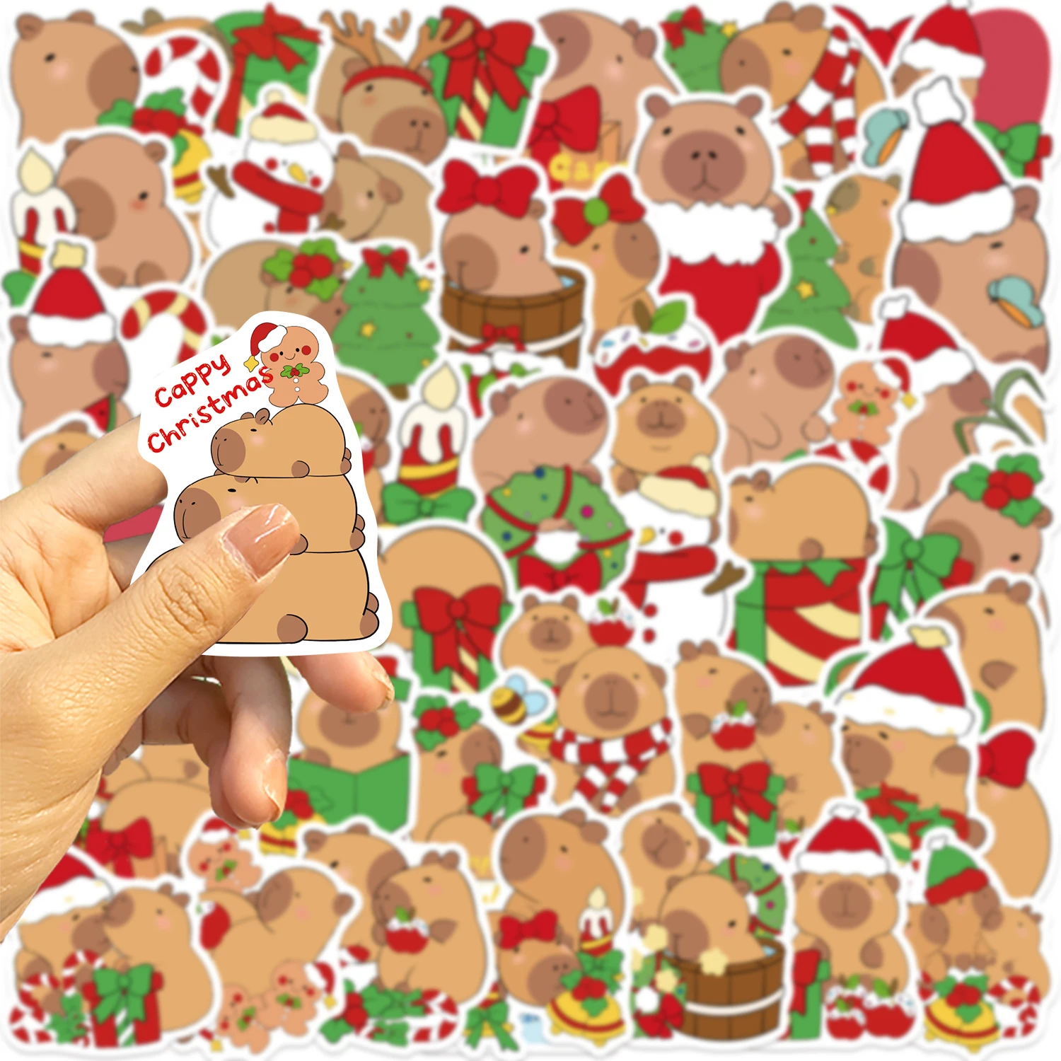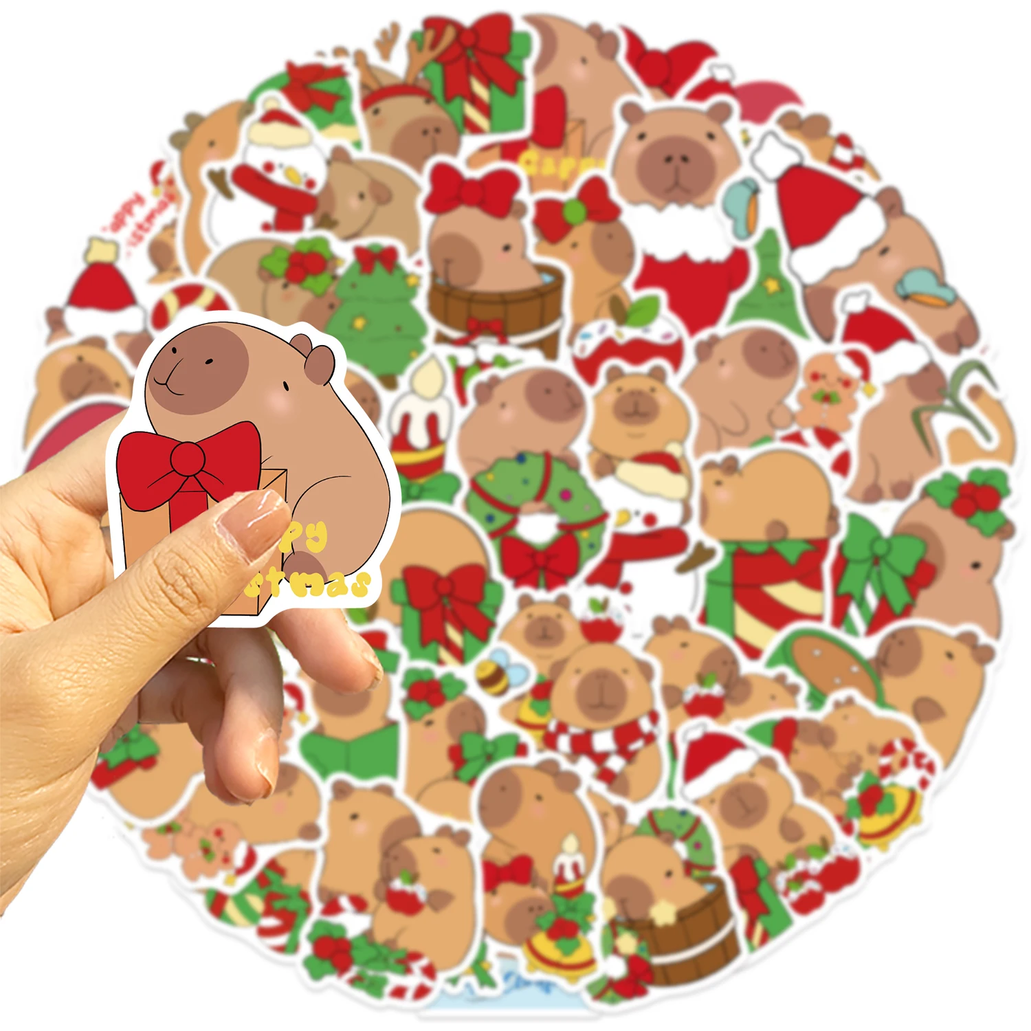 50PCS Christmas Capybaras Stickers Cartoon Cute Decals Toy Stationery Guitar Phone Bicycle Laptop Luggage Car Graffiti Sticker