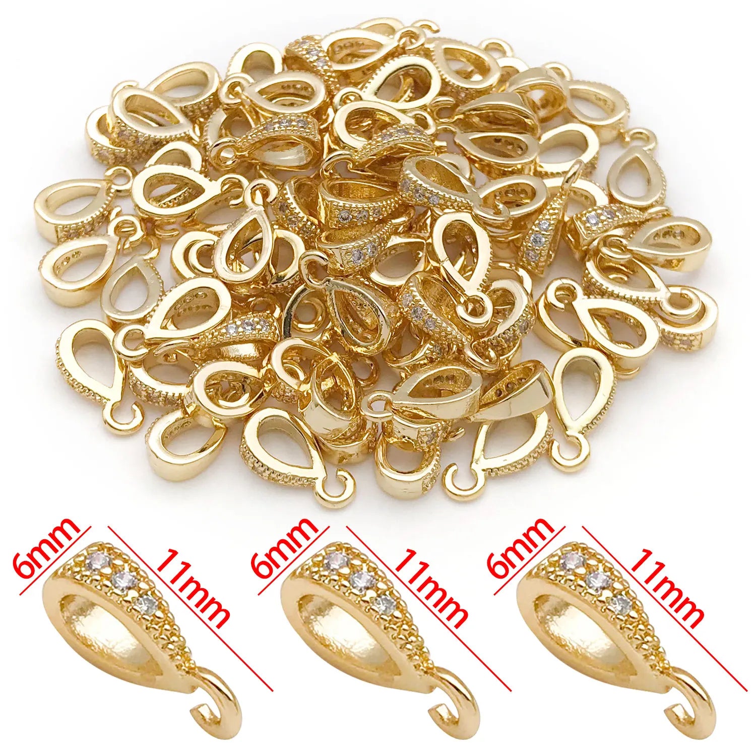 5pcs 18K Real Gold Plated Brass Melon Seed Buckle Connectors, Inlaid Zircon For DIY Bracelet Necklace Jewelry Making Accessories