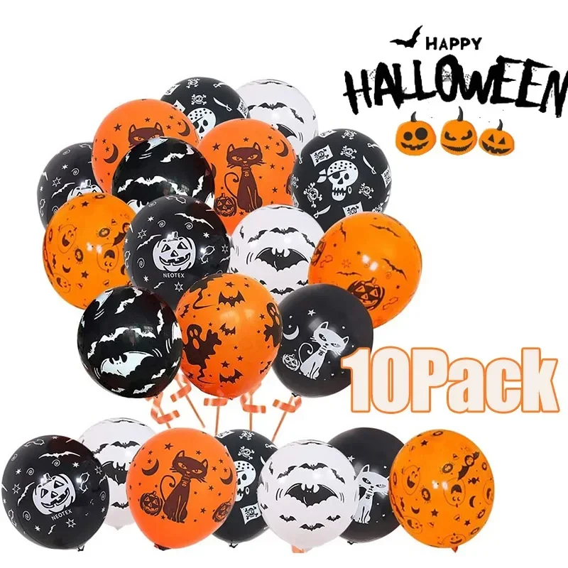 5PCS/1Set Halloween Balloons 12 Inch Orange White Latex Balloon for Halloween Holiday Events Party Favors Supplies Decoration