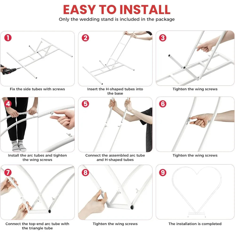 6.7FT Heart Shape Wedding Arch Stand with Base, Wedding Arches for Ceremony, Metal Balloon Arch Kit Wedding Heart Backdrop Stand