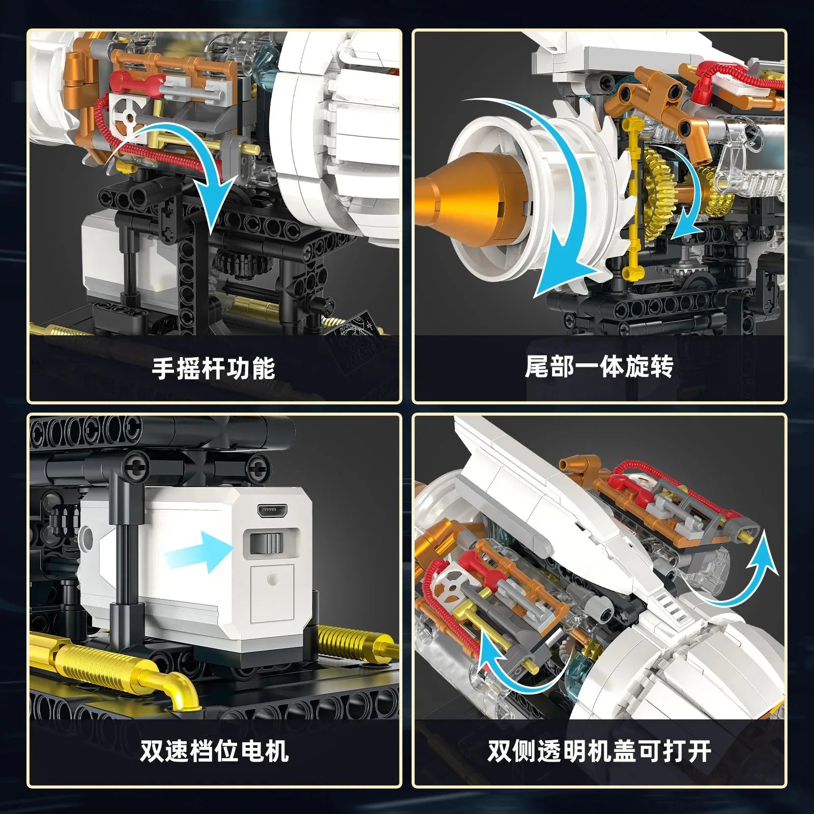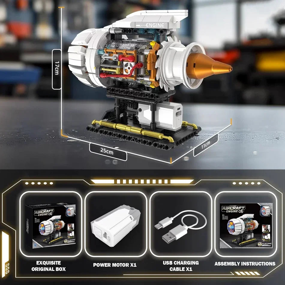 650PCS Aircraft Engine Model Building Blocks Set Technical Electrically Driven MOC Educational Toys Kids Boys Christmas Gifts