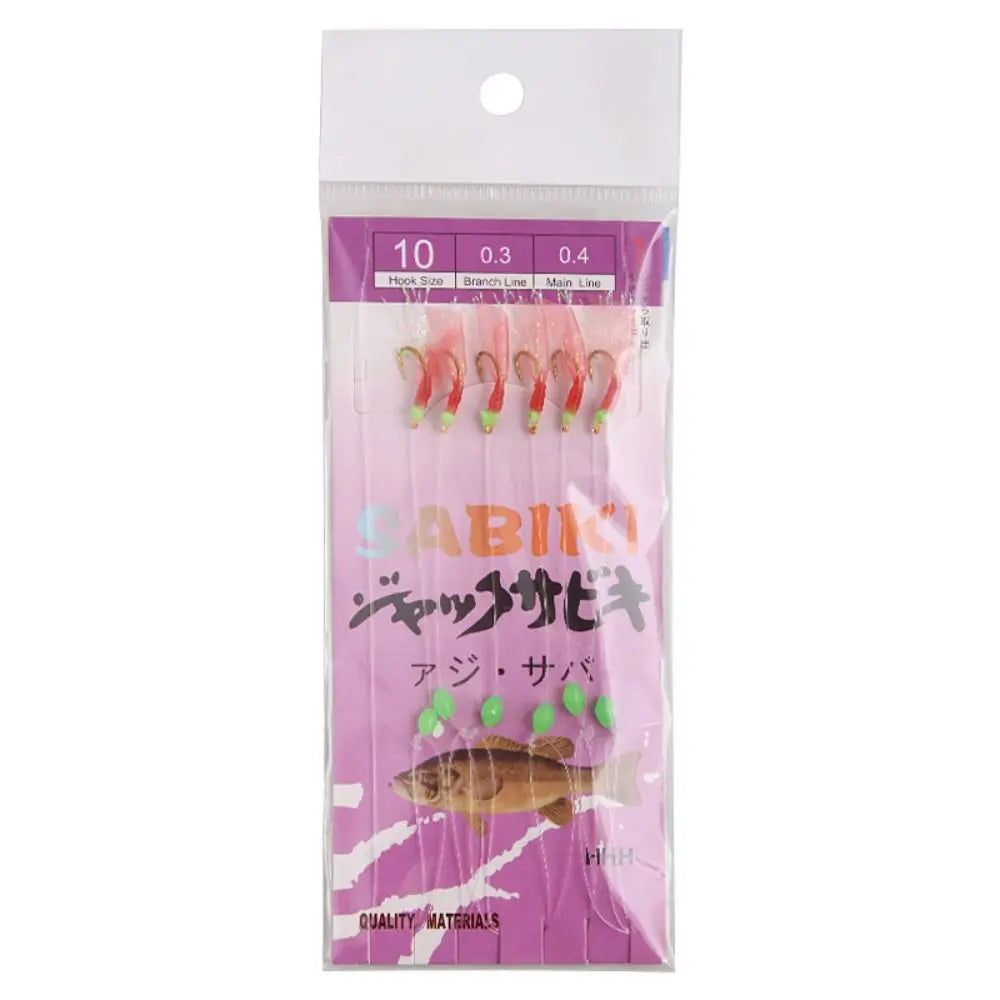 6pcs Luminous Bean Sabiki String Hook Rig Wobbler Rubber Bionic String Hook 10 Sizes Lure Bait Tackle for Sea/Freshwater Fishing
