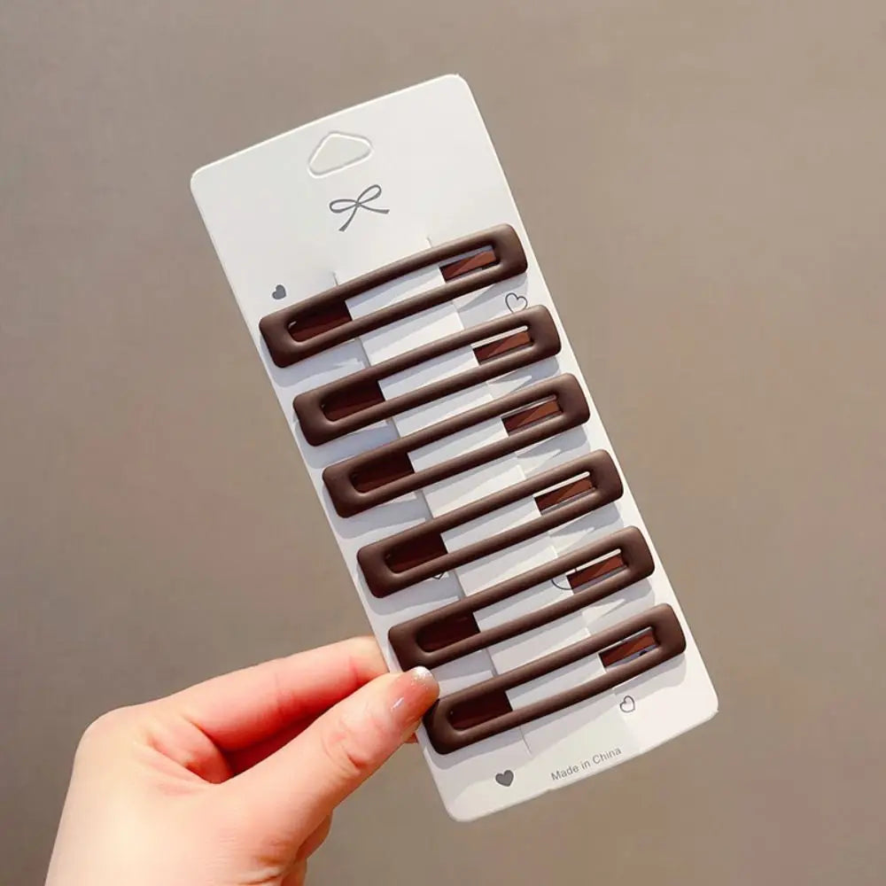 6pcs/set Headwear Korean Style Rectangle Hairpins Frosting Metal Geometry Barrettes Solid Color Hair Clip Daily