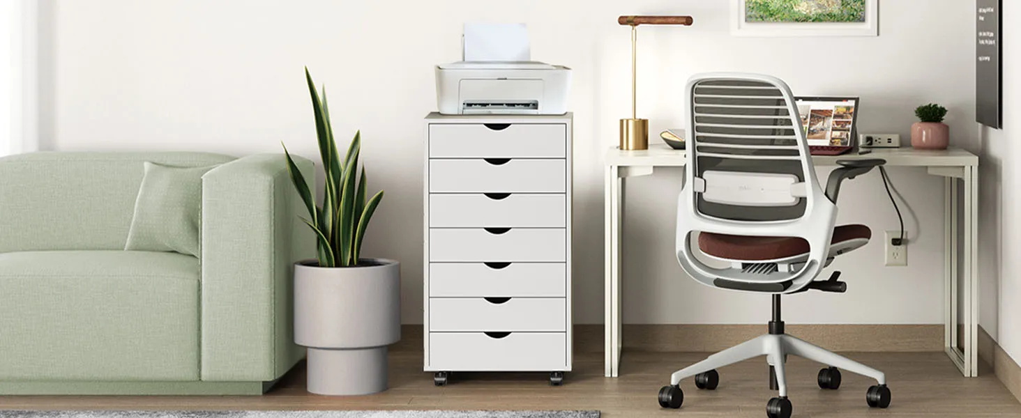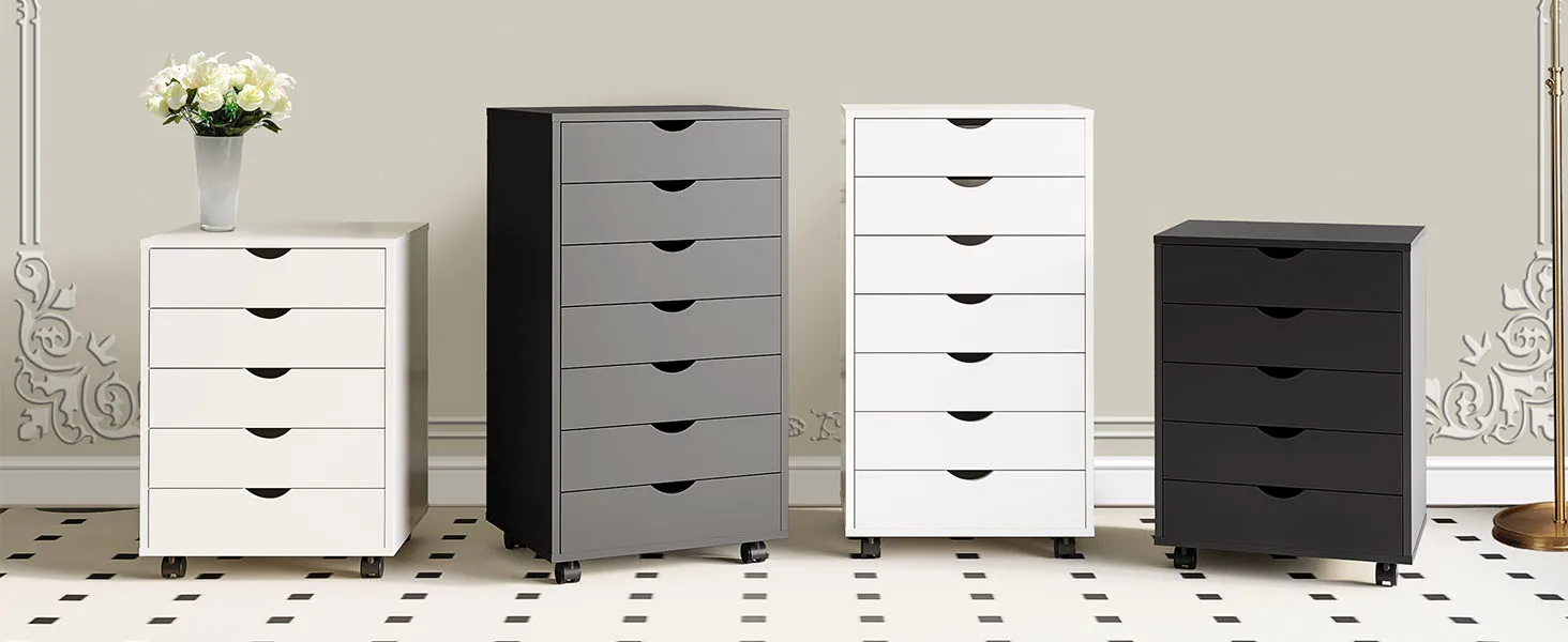 7 Drawer Mobile File Cabinet Under Desk Storage Organization with Wheels Vertical Filing Chest Rolling Wood Small Desk Pr