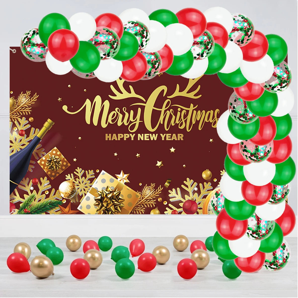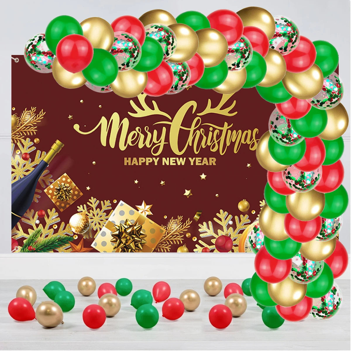 70Pcs Red White Green Latex Metallic Gold Balloons Confetti Christmas Gift Party Home Room Adult Wall Decorations 2022 Globos
