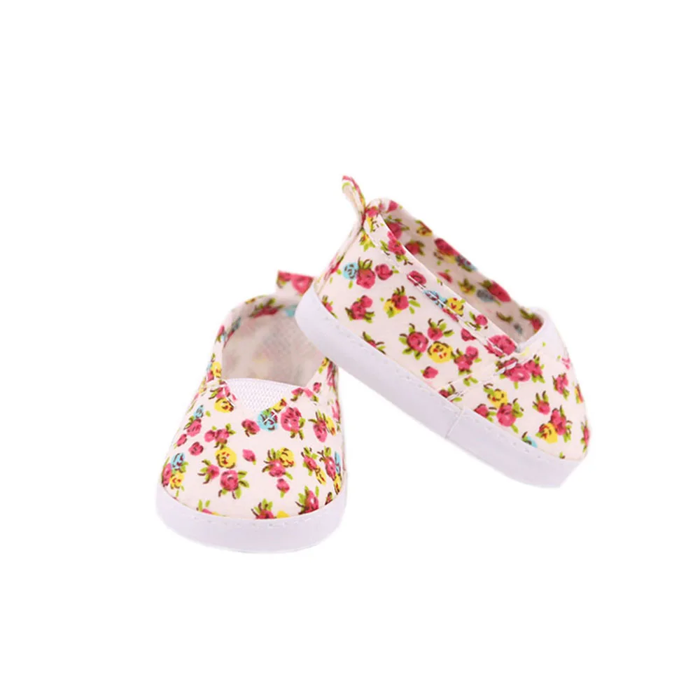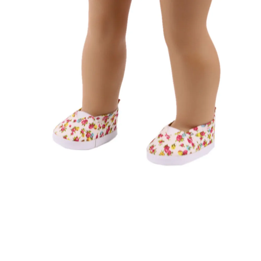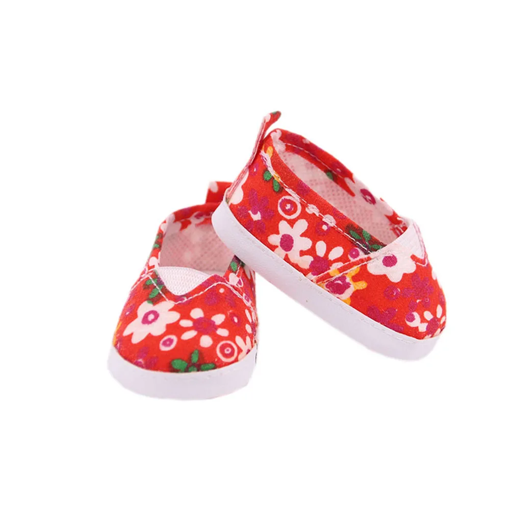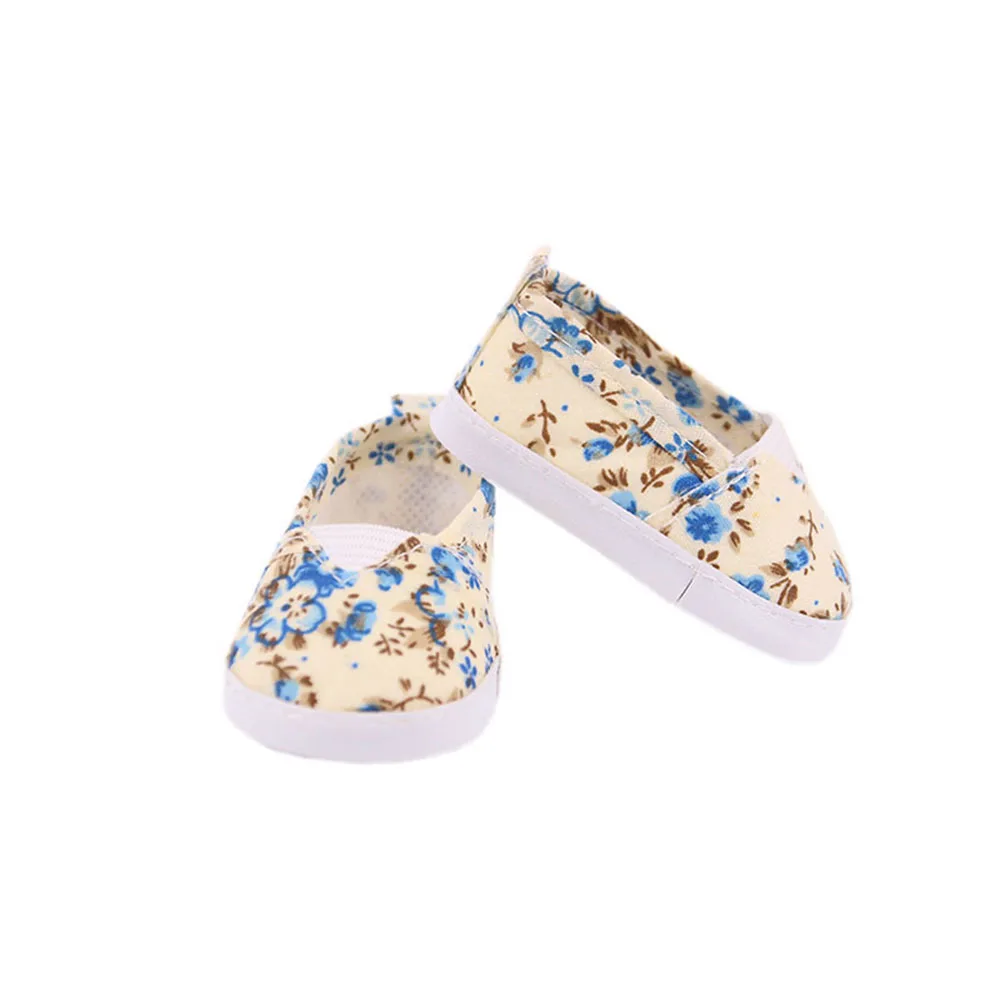 7Cm length Doll Shoes For 18 inch Girls American & 43Cm Baby New Born Doll Clothes Accessories Flowers/Bows Stamp Canvas Shoes