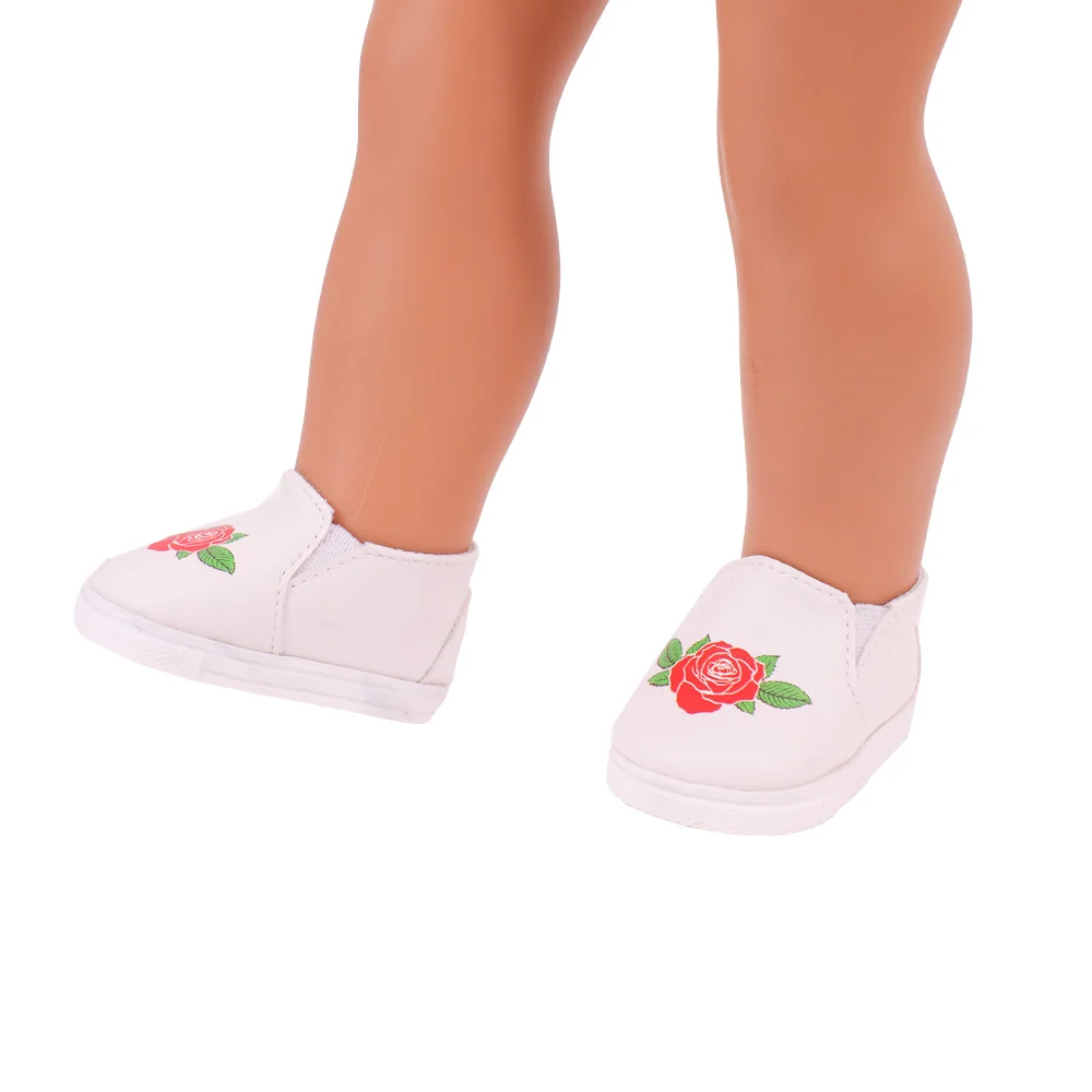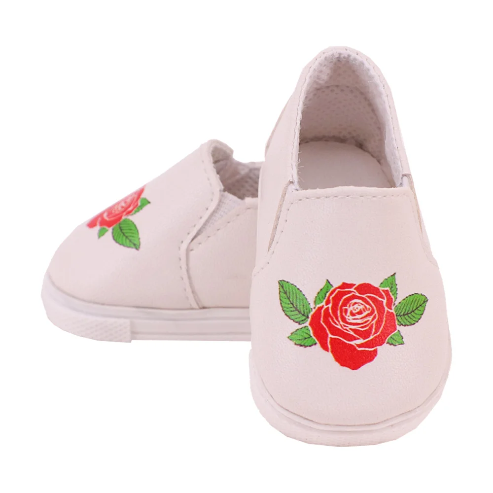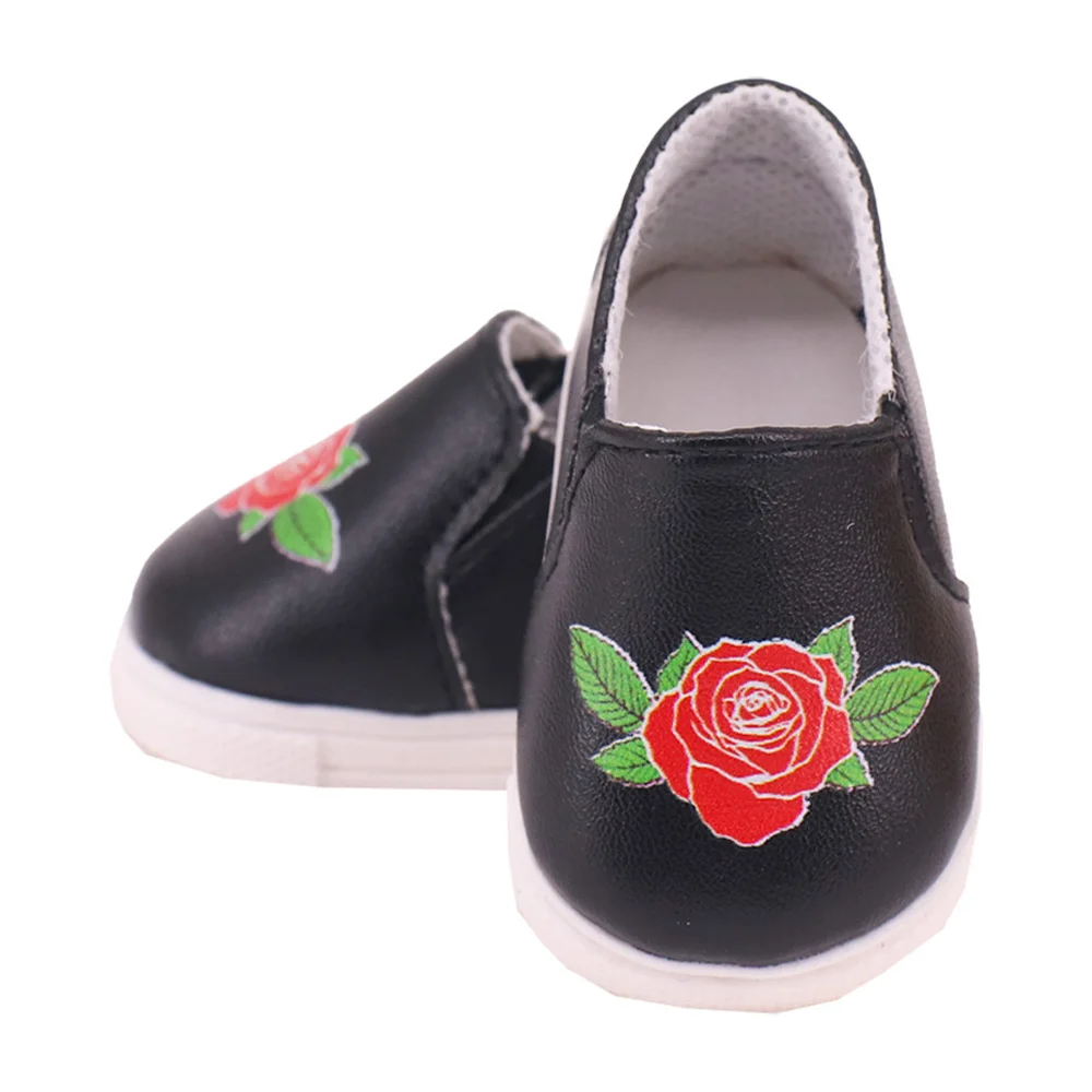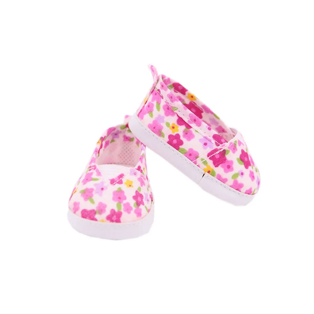 7Cm length Doll Shoes For 18 inch Girls American & 43Cm Baby New Born Doll Clothes Accessories Flowers/Bows Stamp Canvas Shoes