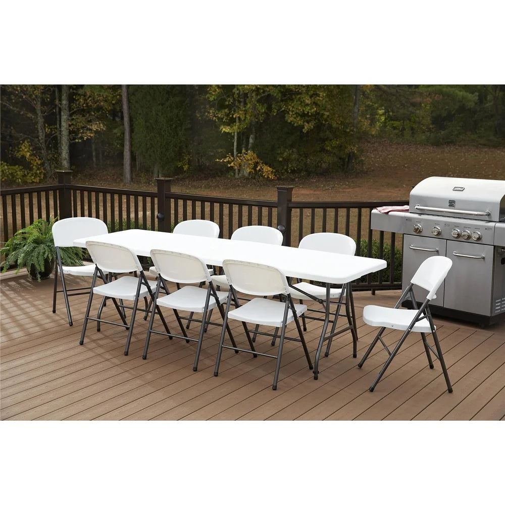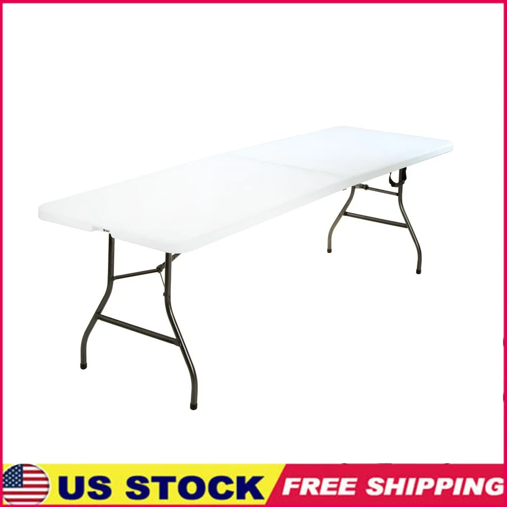 8 Foot Folding Table Waterproof Centerfold Design Heavy Duty Steel Frame Easy Clean Indoor Outdoor Use Portable Space Saving
