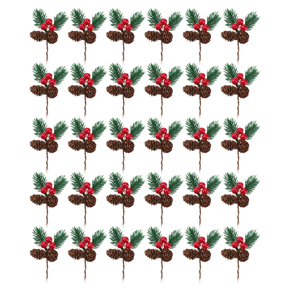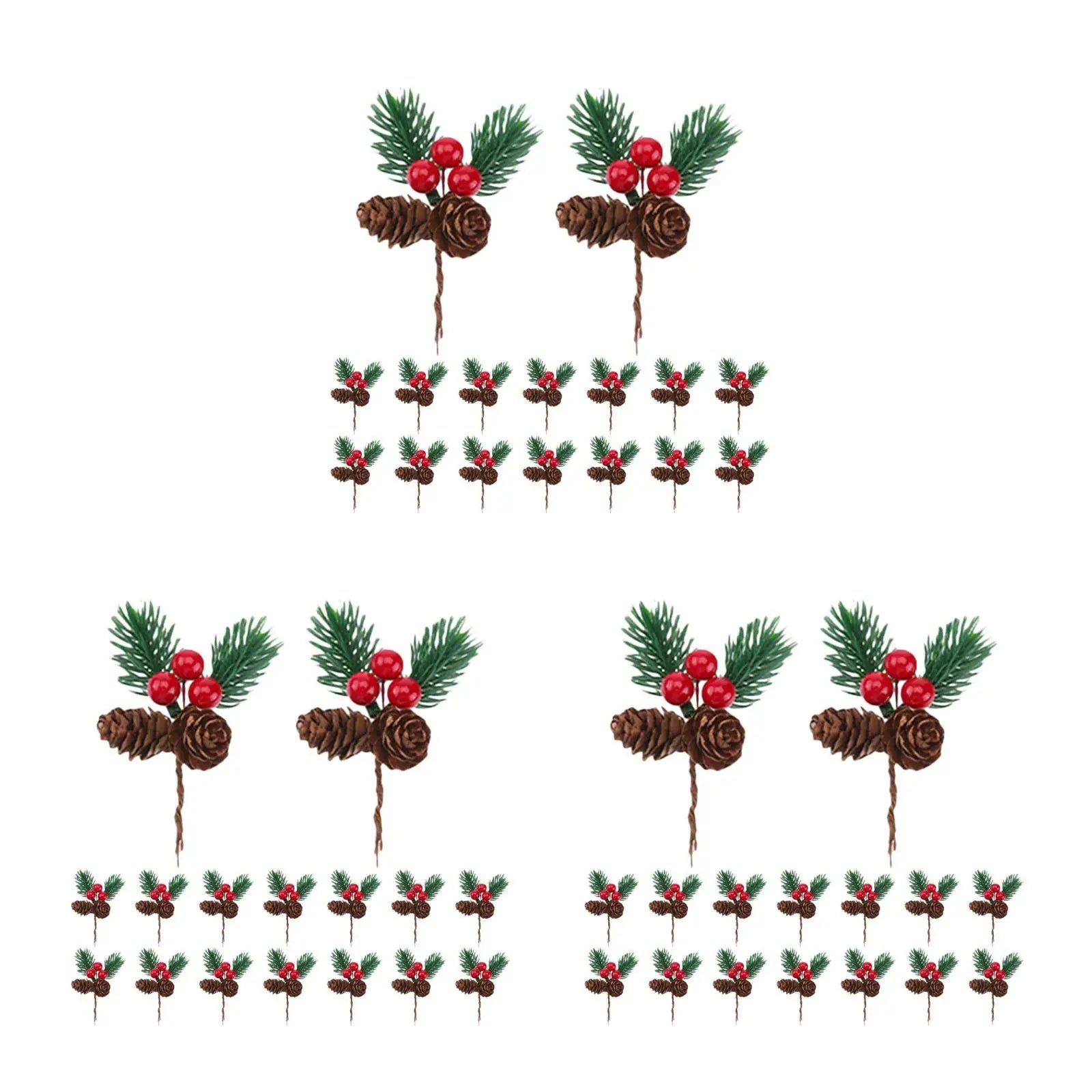 90 pcs Artificial Pine Branches With Red Berries And Pine Cones Christmas Decorations For Wreaths Trees Garlands Centerpieces