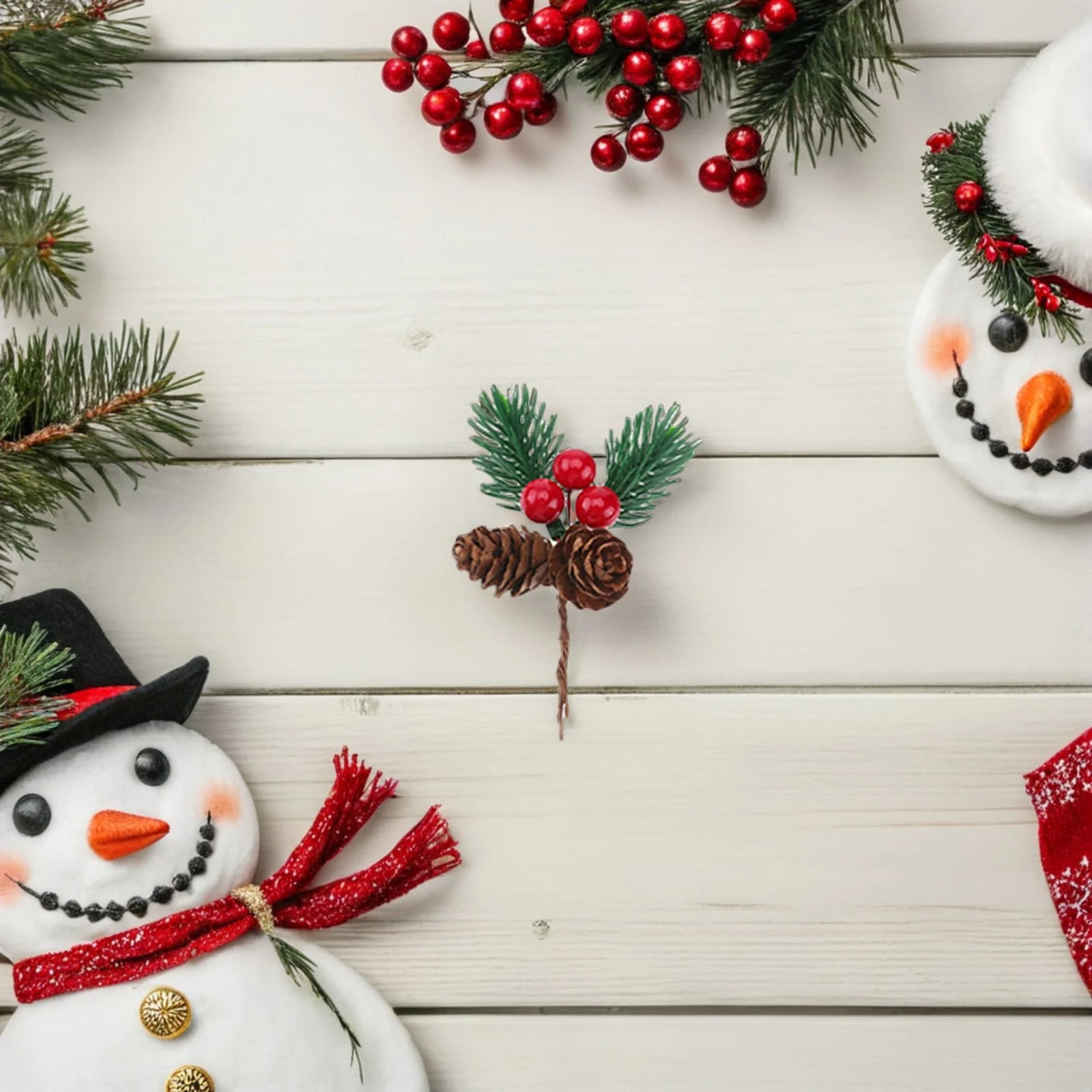 This Christmas decoration features realistic artificial pine branches, pine needles, and red berries, creating a festive and natural look. Perfect for adding a touch of holiday cheer to your home, these decorations can be used in wreaths, garlands, or as standalone accents in vases and centerpieces.