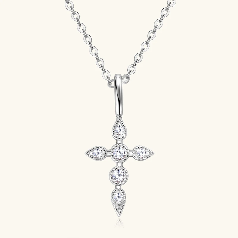 925 Sterling SilverD Color Full Moissanite Cross Pendant Necklace Woman Pendant Christmas Valentine's Day Party Wedding Fine Jewelry