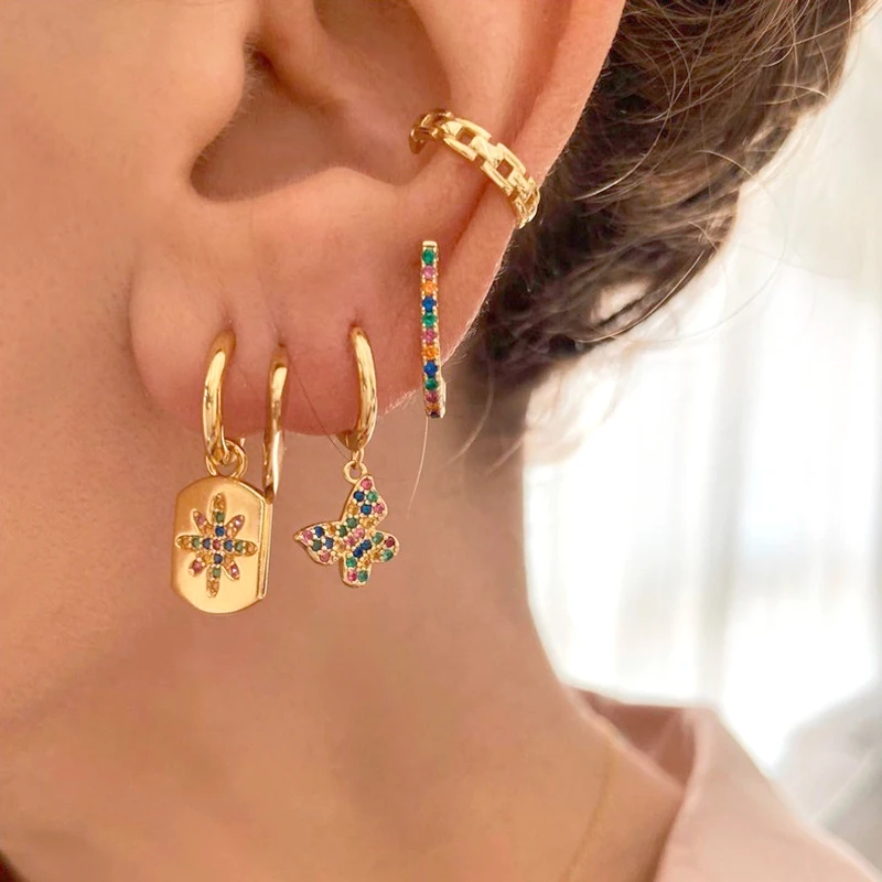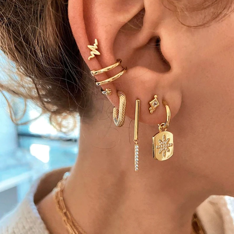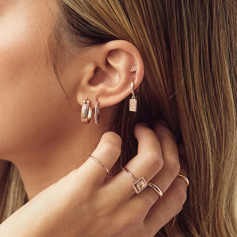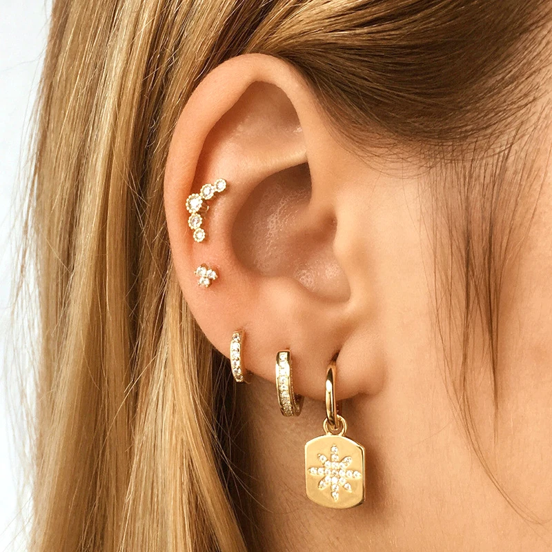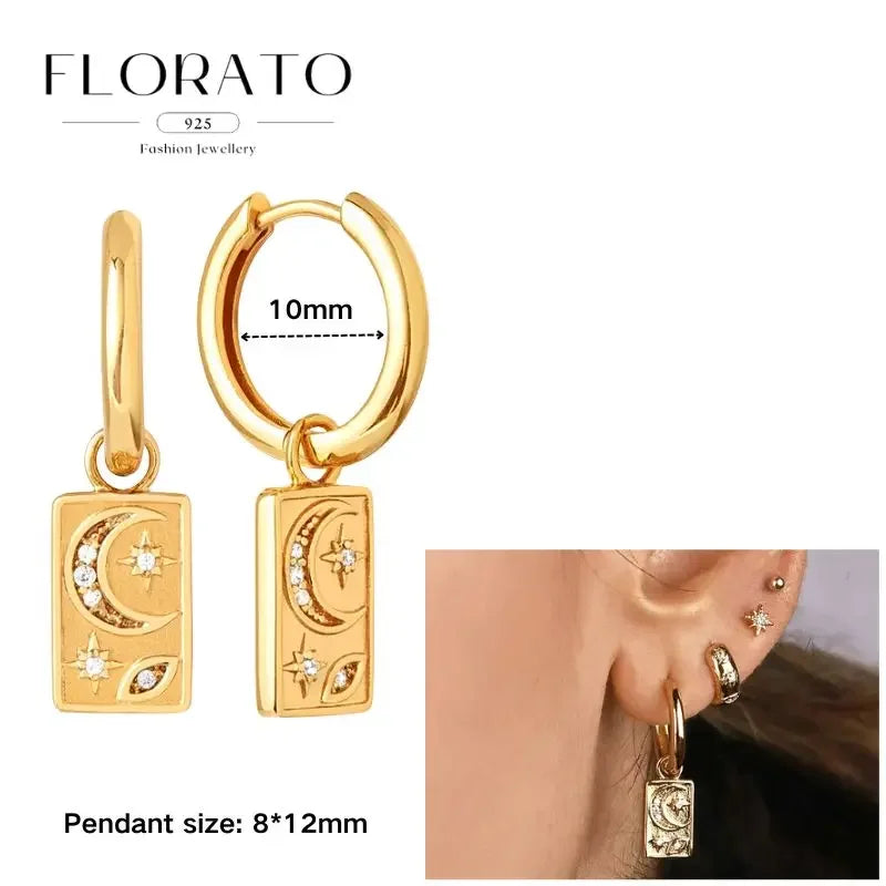 925 Sterling Silver Ear Buckle European And American Style Hoop Earrings Round square Pendientes Fashion For Women Birthday Gift