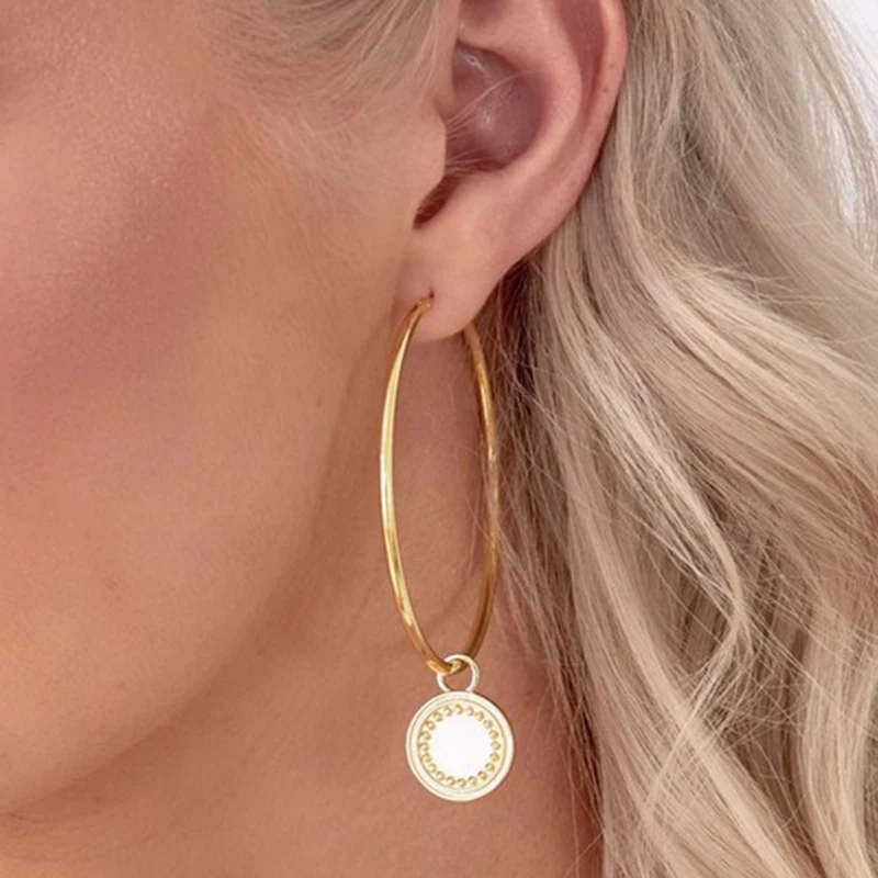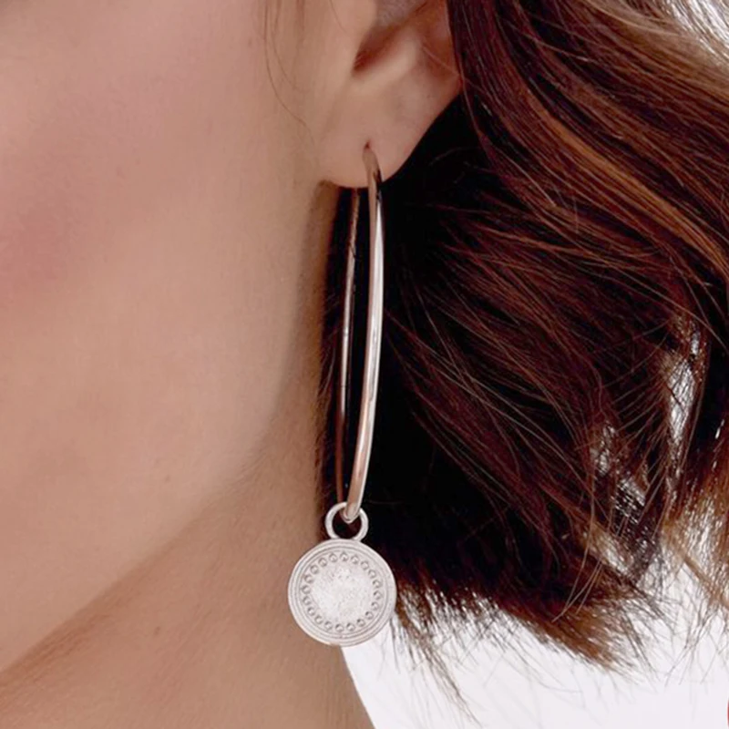 925 Sterling Silver Ear needle European And American Style Hoop Earrings Round square Pendientes Fashion For Women Birthday Gift